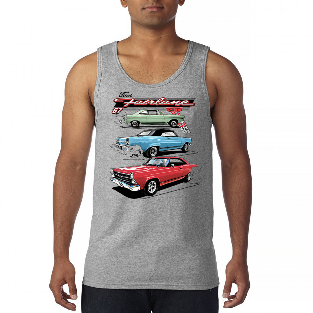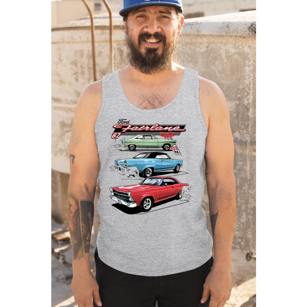 Celebrate the raw power of the 1967 Ford Fairlane GT with this burnout-charged design. Featuring three muscle cars in retro detail, it's made for vintage Ford collectors, classic car fans, and V8 enthusiasts. Whether you're heading to a show or wrenching in the garage, this design brings the roar of the 60s.