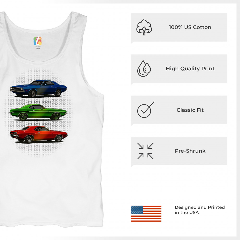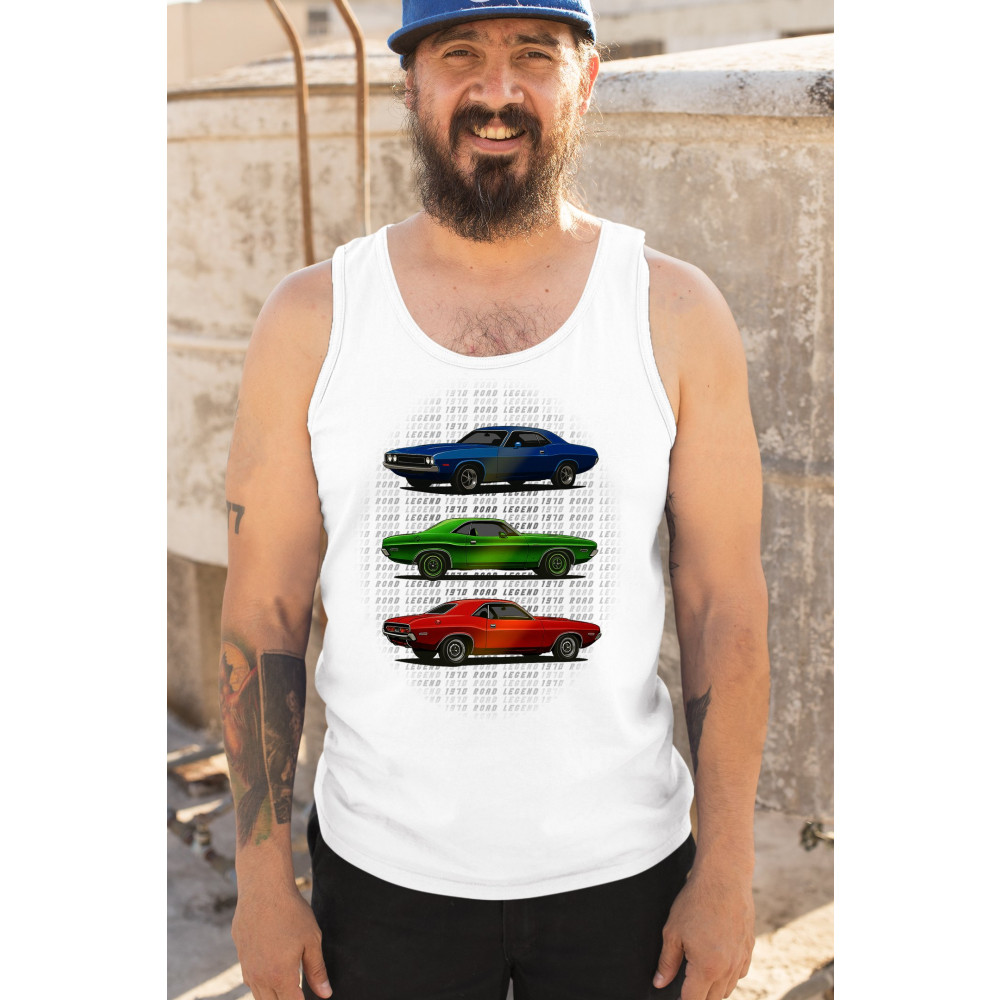 Three bold 1970 muscle cars, stacked in red, green, and blue, celebrate vintage power and road legend status. This retro-inspired design captures the essence of American car culture—made for gearheads, V8 fans, and anyone who lives for classic performance, heritage, and style.