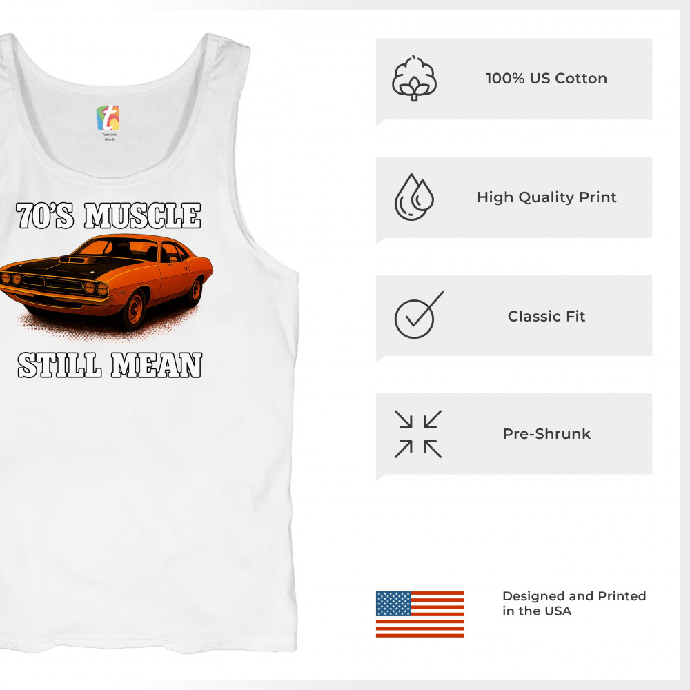 Celebrate vintage horsepower with this bold 70s muscle car design that proves it's still mean. Features classic styling, aggressive stance, and old-school V8 performance pride. A must-have for retro car collectors, gearheads, and muscle enthusiasts who live for raw American power.