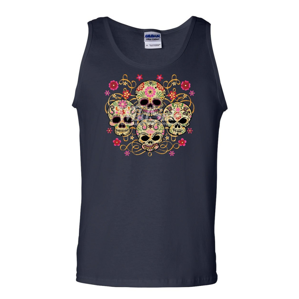 4 CUTE SUGAR SKULLS tank top calaveras dia de los muertos mexico sleeveless navy blue