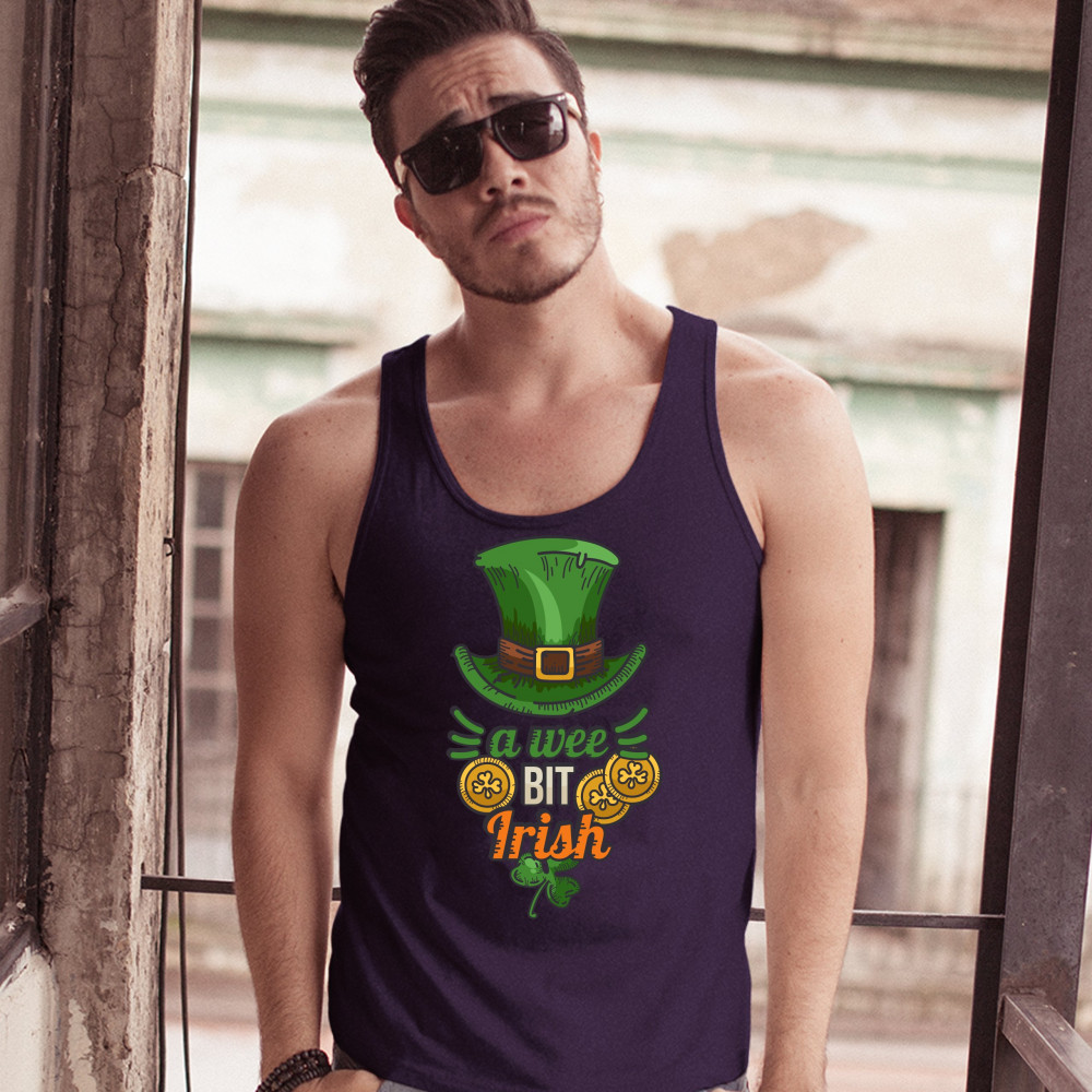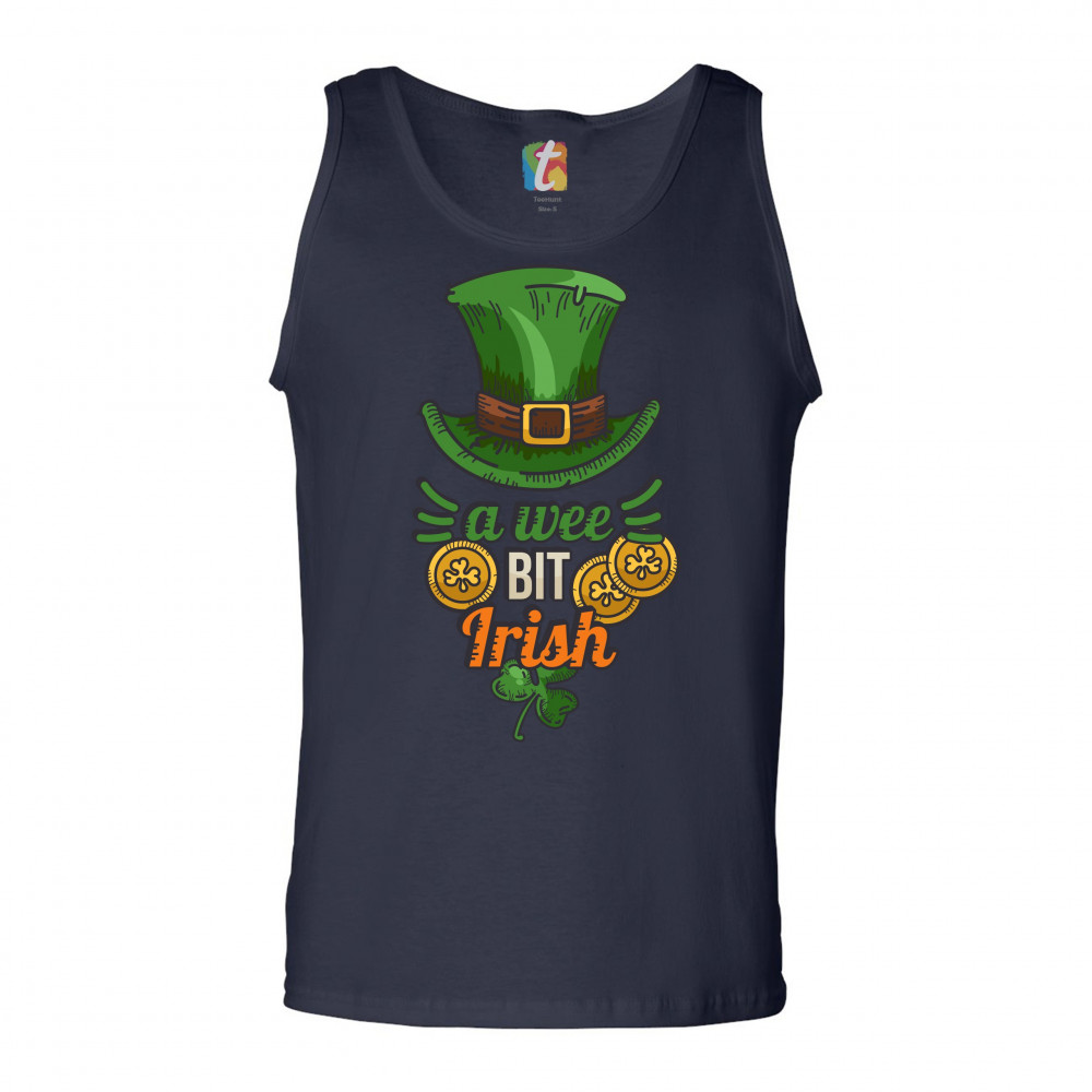A WEE BIT IRISH tank top st. patrick's day shamrock leprechaun hat men's top navy blue