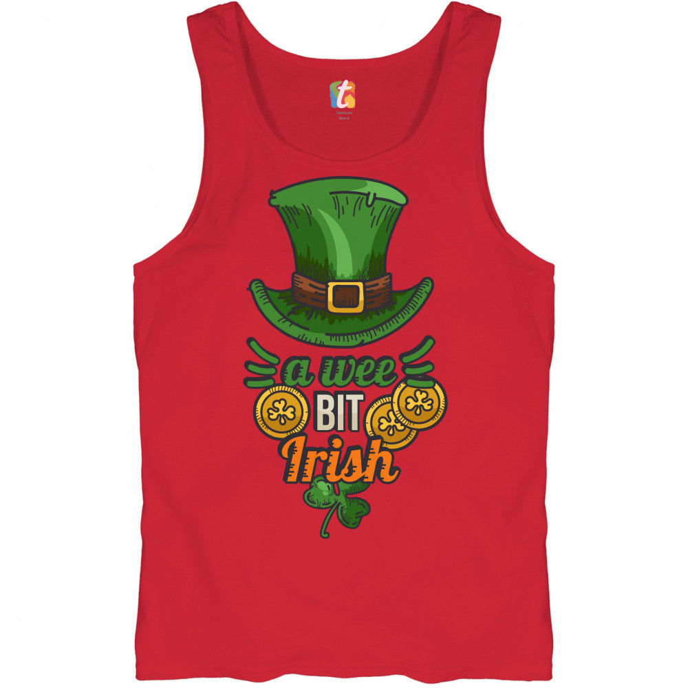 A WEE BIT IRISH tank top st. patrick's day shamrock leprechaun hat men's top red