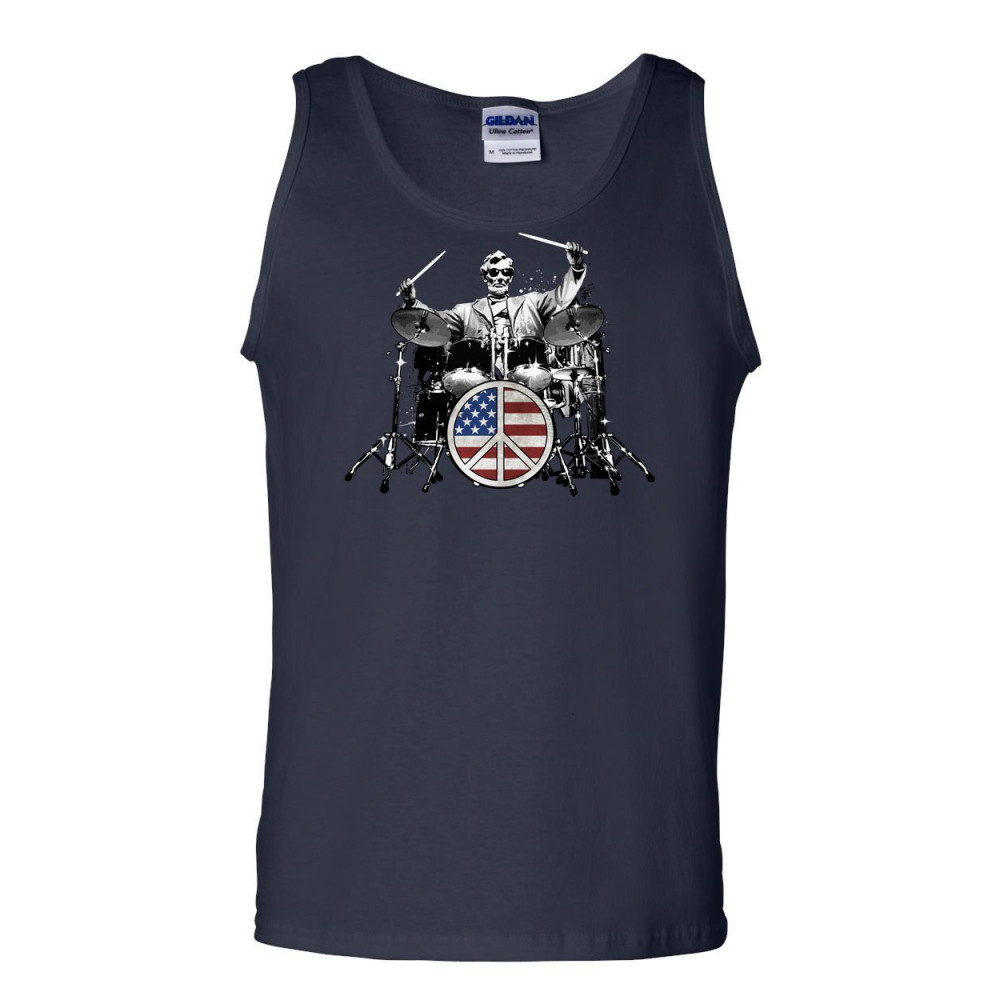 ABRAHAM LINCOLN ROCK & ROLL STAR tank top lincoln memorial peace sleeveless navy blue
