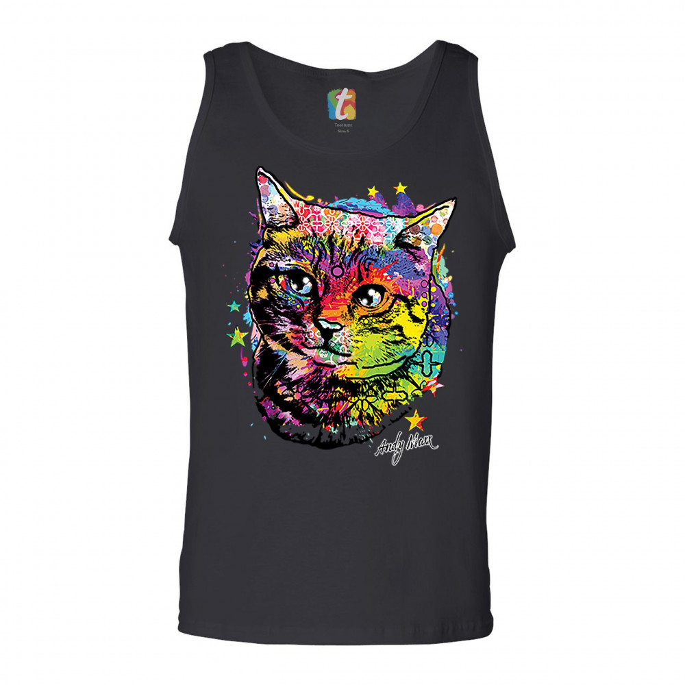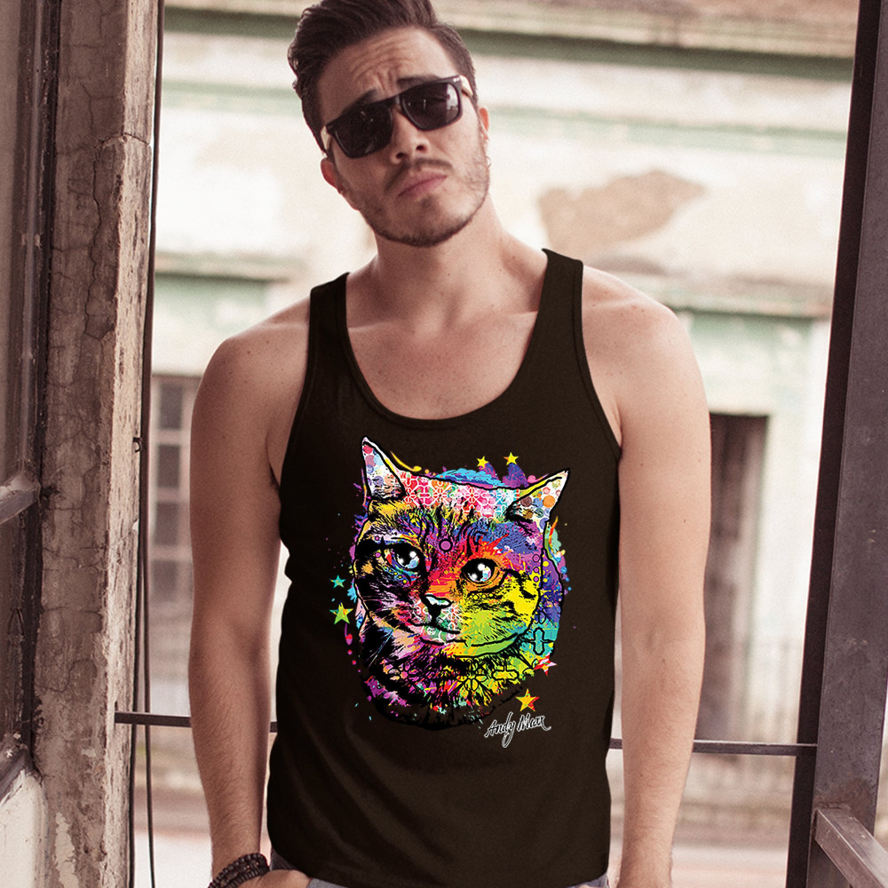 ADORABLE KITTEN tank top neon multicolor kitty andy maxx cat lover men's top black