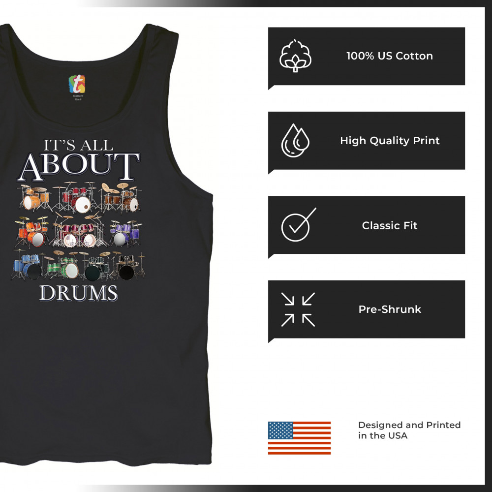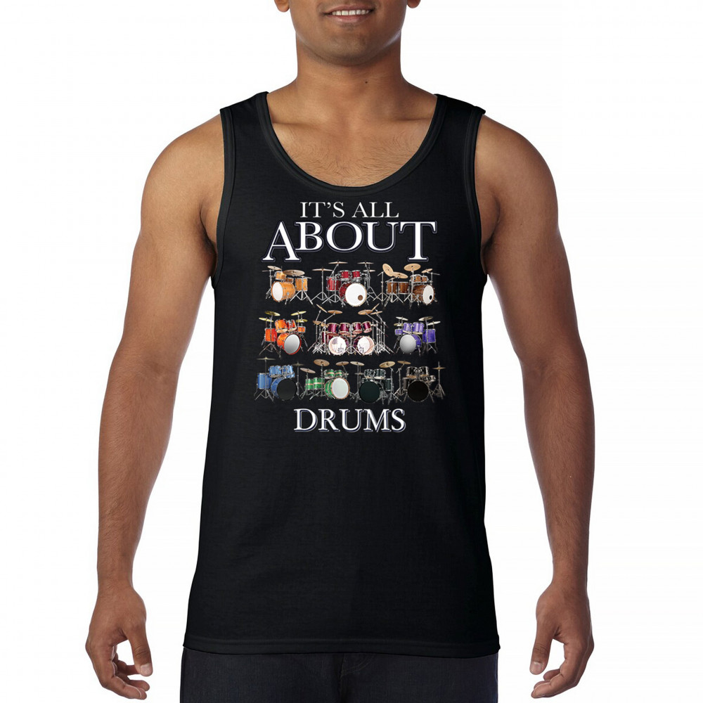 ALL ABOUT DRUMS tank top colorful funny drummer music festival party men's top black