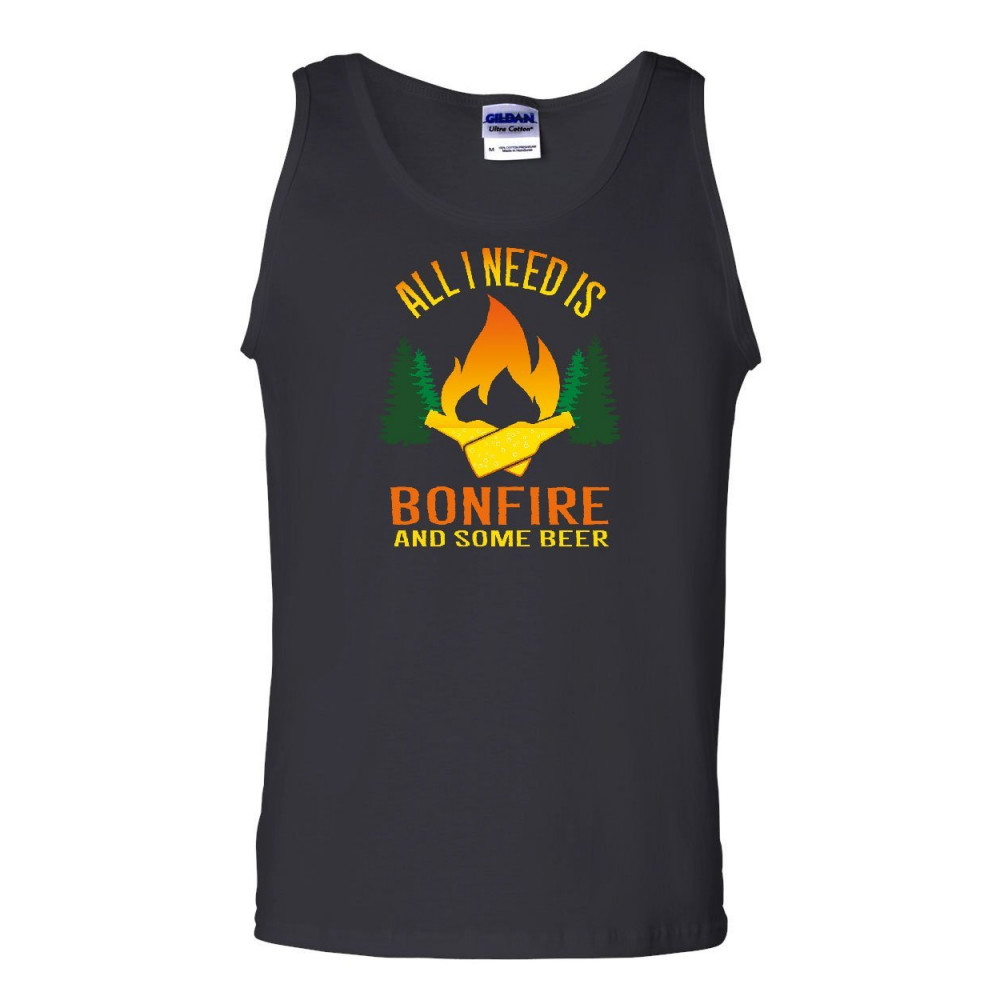 ALL I NEED IS BONFIRE & SOME BEER tank top funny camping drinking sleeveless black