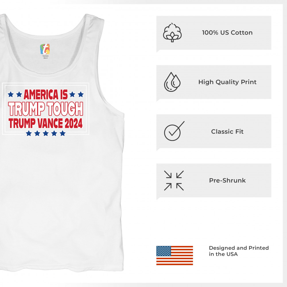 Support Trump and Vance in 2024 with this bold, patriotic design, perfect for rallies and everyday wear. Stand for America First principles and conservative values.
