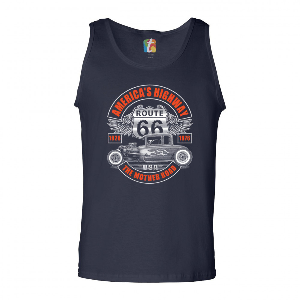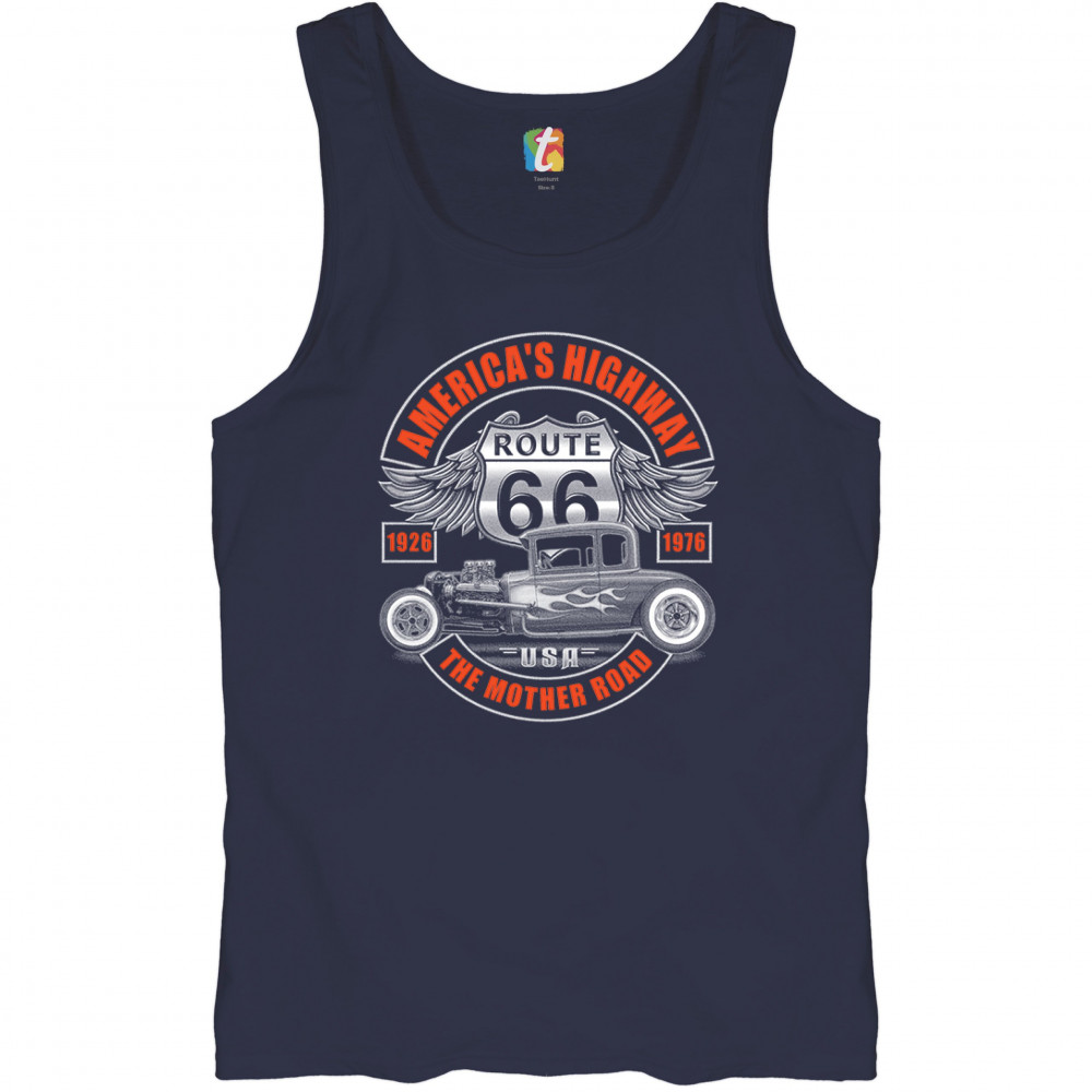 AMERICA'S HIGHWAY tank top route 66 the mother road hot rod men's top navy blue