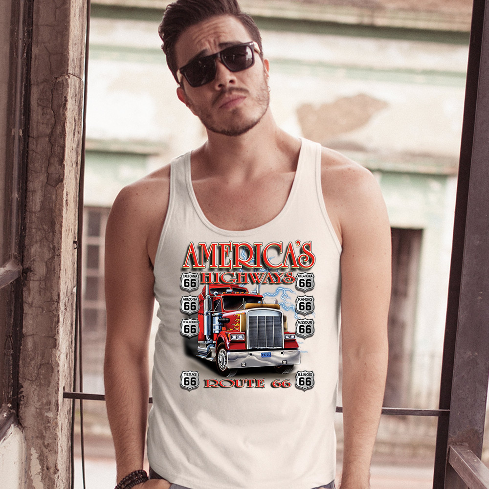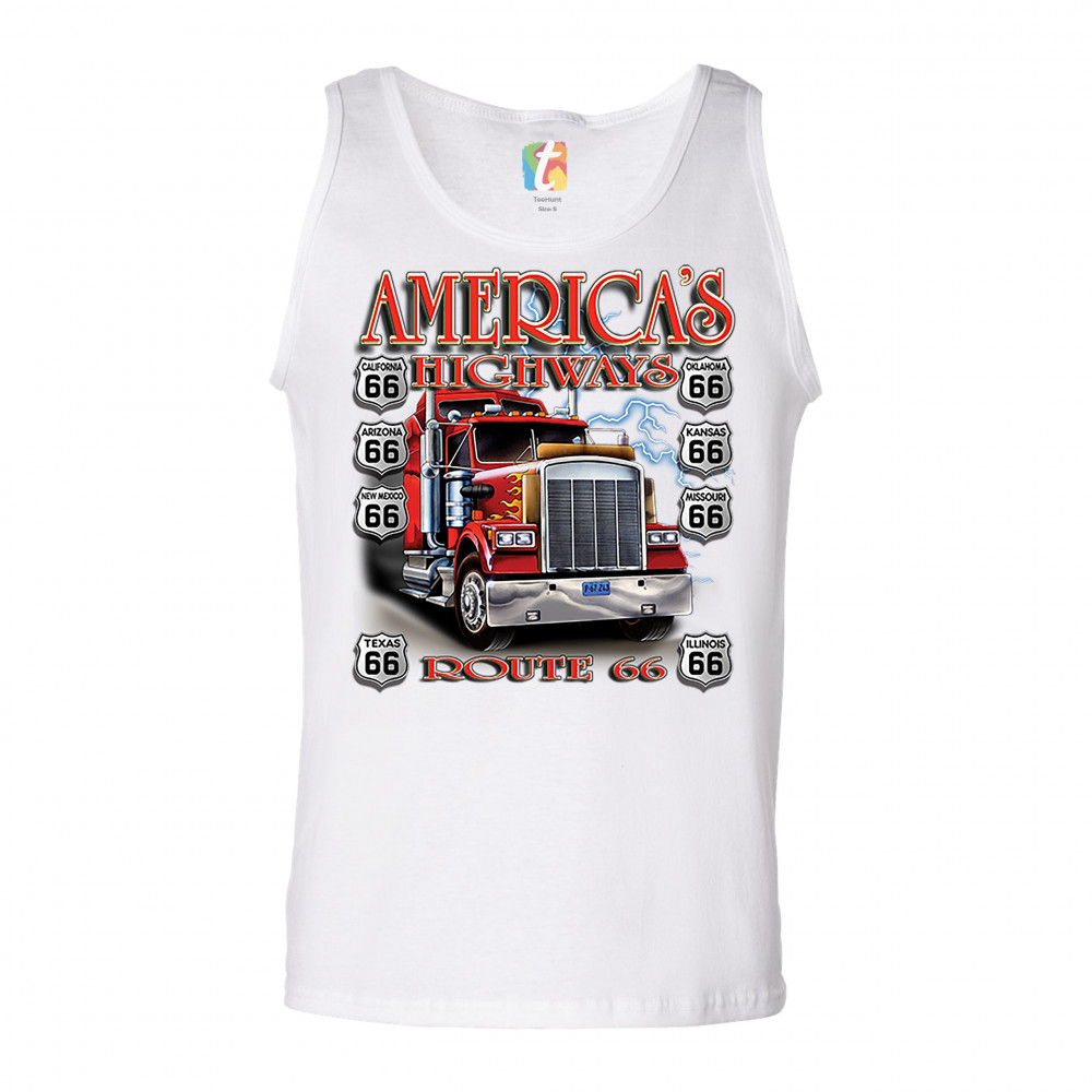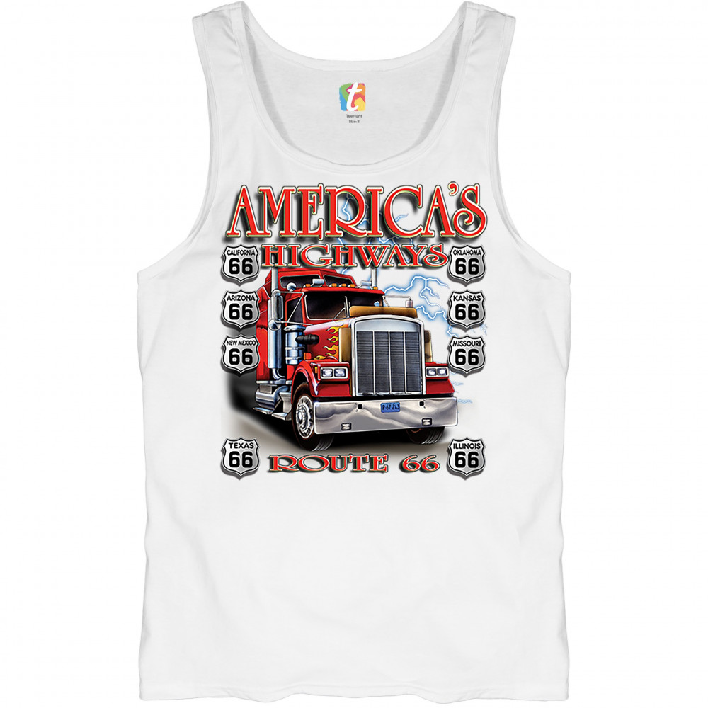 AMERICA'S HIGHWAYS ROUTE 66 tank top truck driver mechanic teamster men's top white