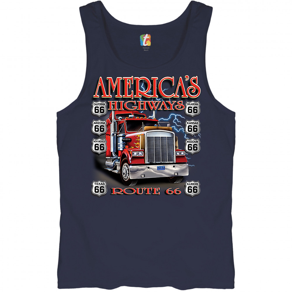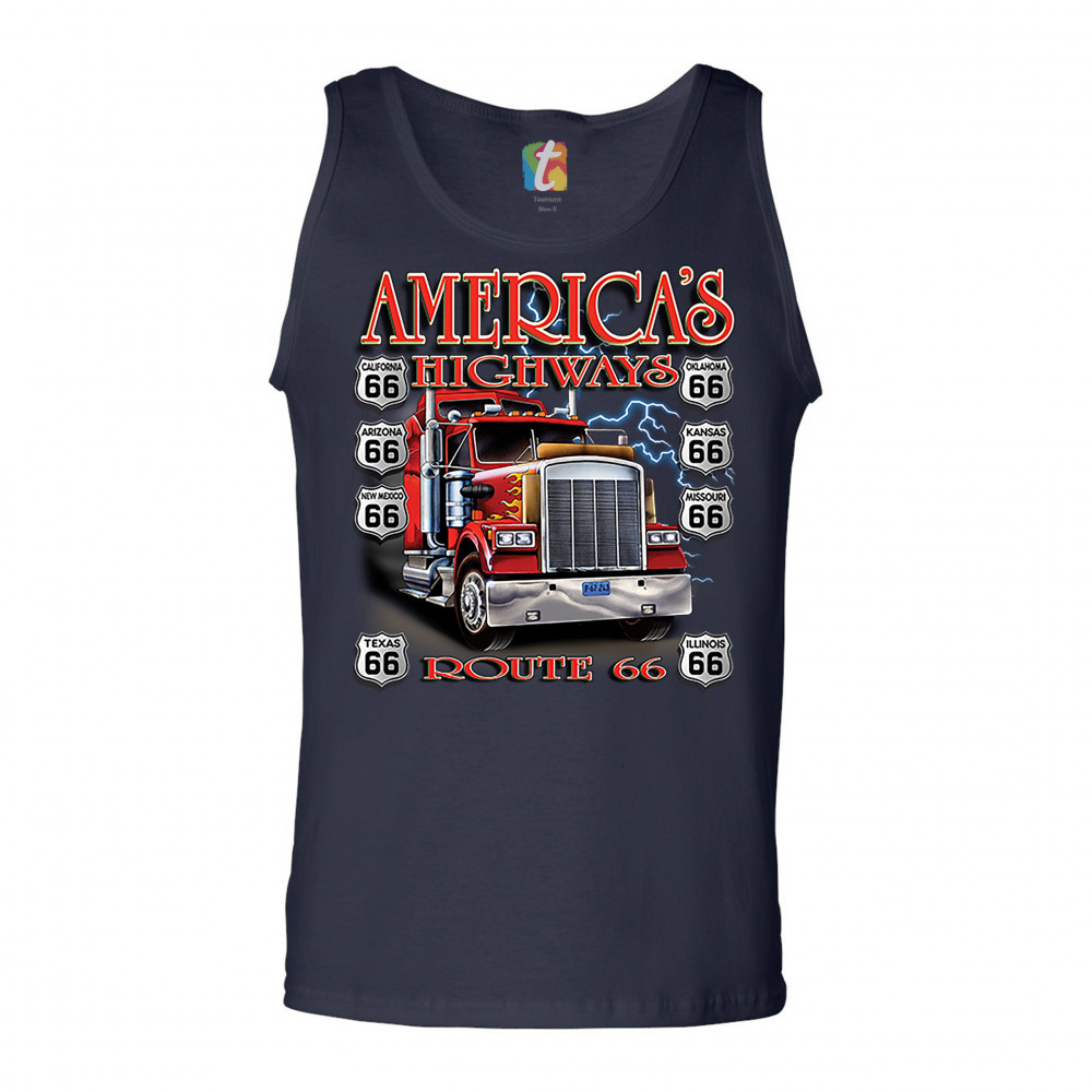 AMERICA'S HIGHWAYS ROUTE 66 tank top truck driver mechanic teamster men's top navy blue