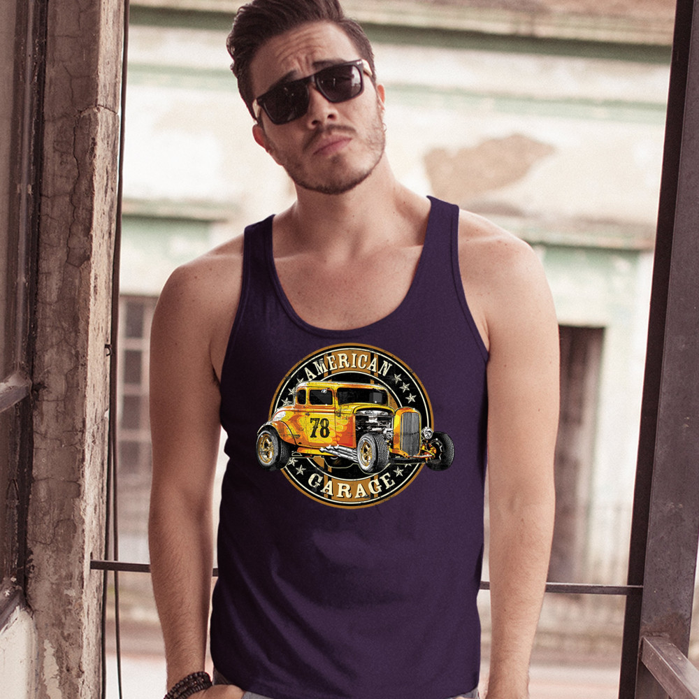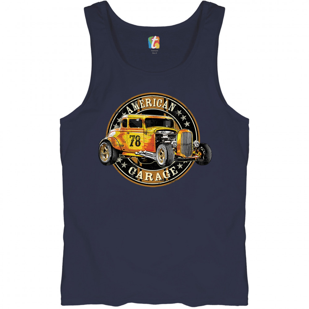 AMERICAN GARAGE tank top retro hot rod vintage american muscle men's top navy blue