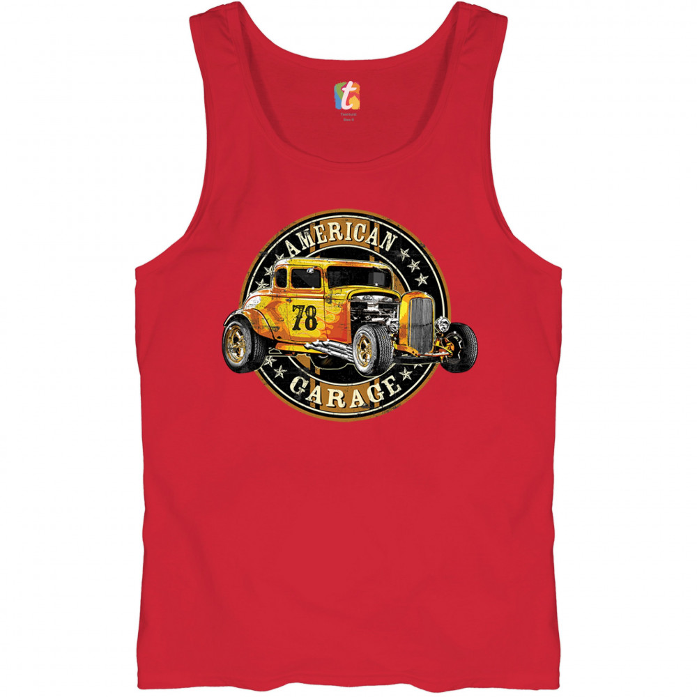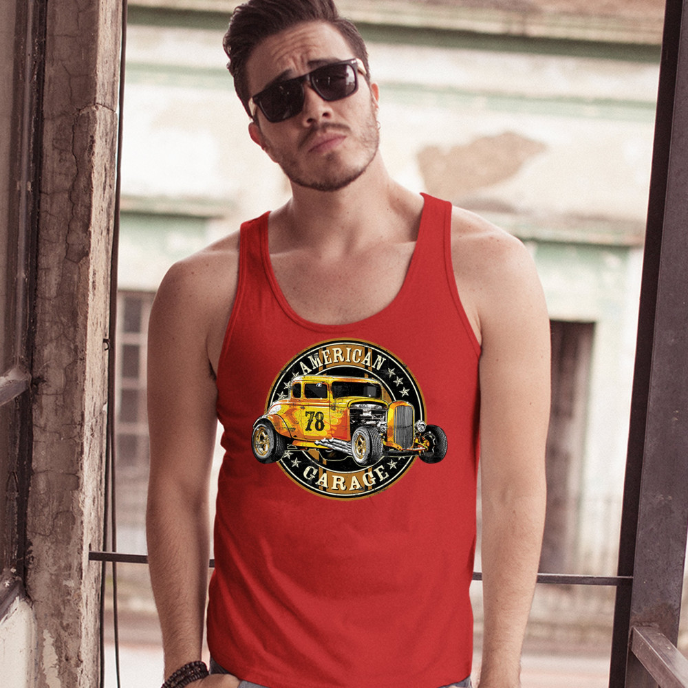 AMERICAN GARAGE tank top retro hot rod vintage american muscle men's top red