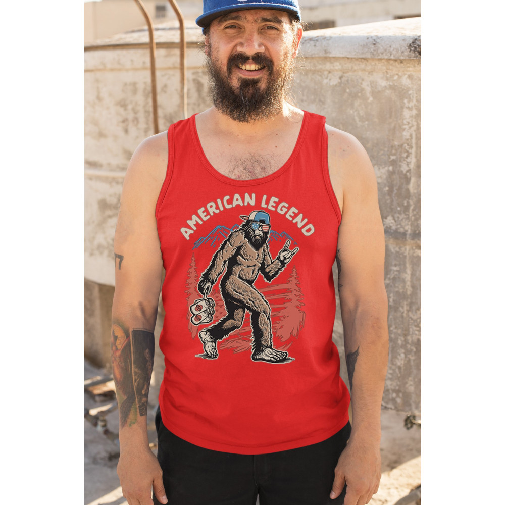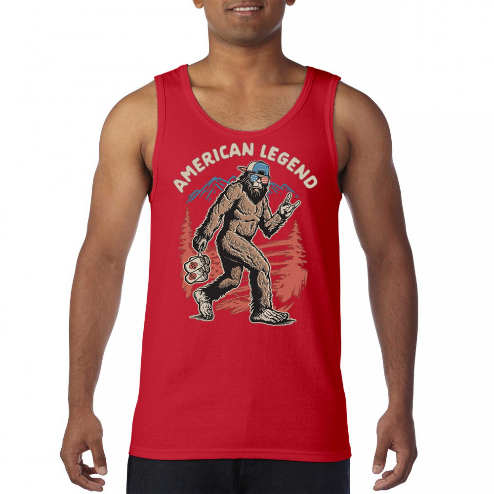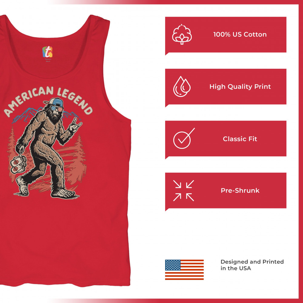 Funny Bigfoot design with patriotic flair—ideal for BBQs, beer lovers, campers, and cryptid fans who love to party in style!