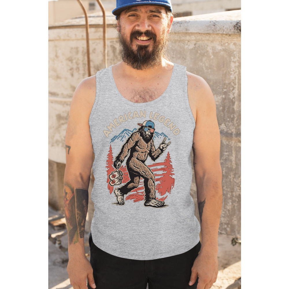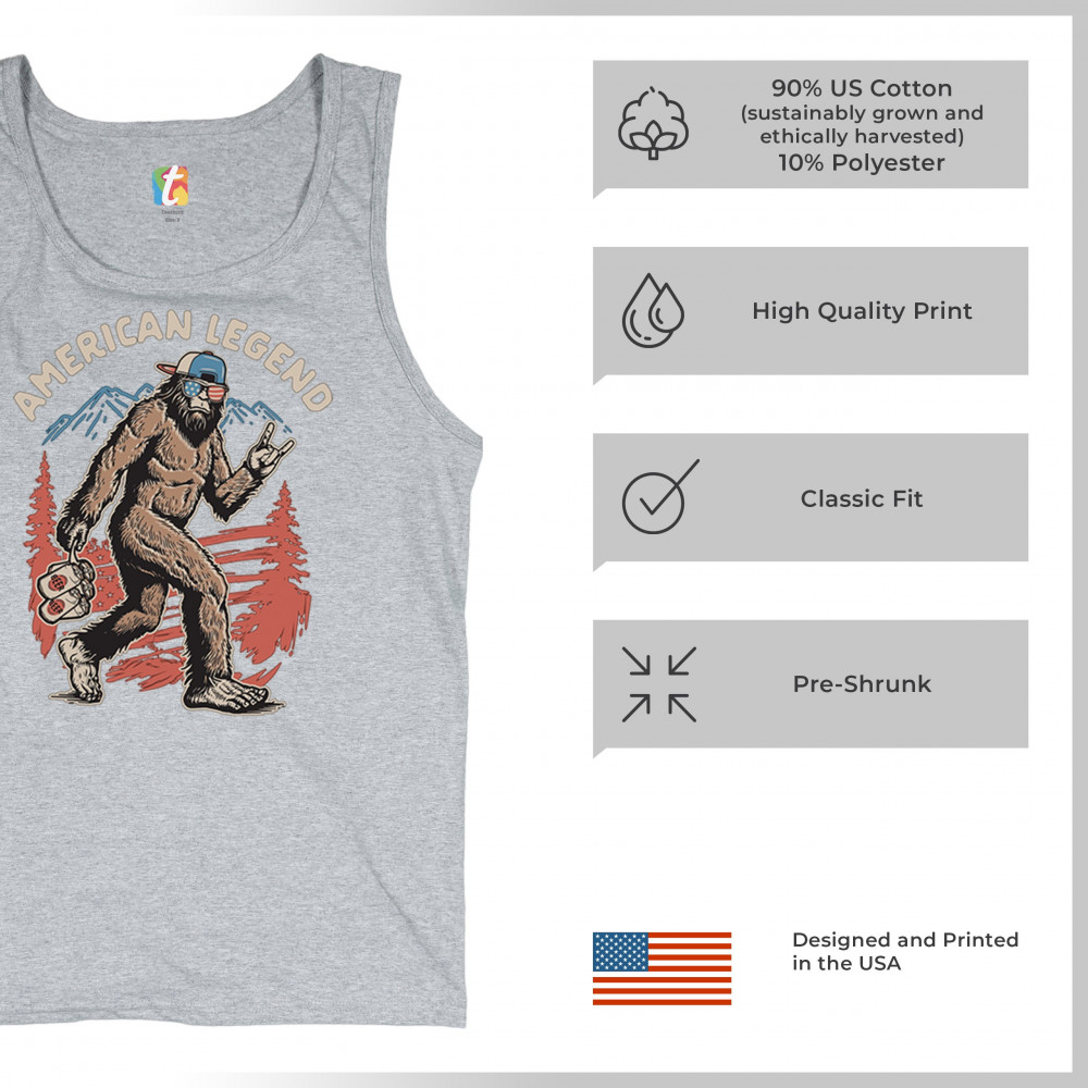 Funny Bigfoot design with patriotic flair—ideal for BBQs, beer lovers, campers, and cryptid fans who love to party in style!