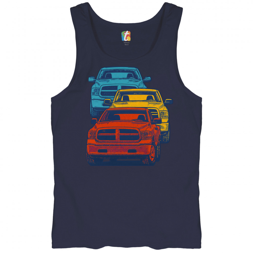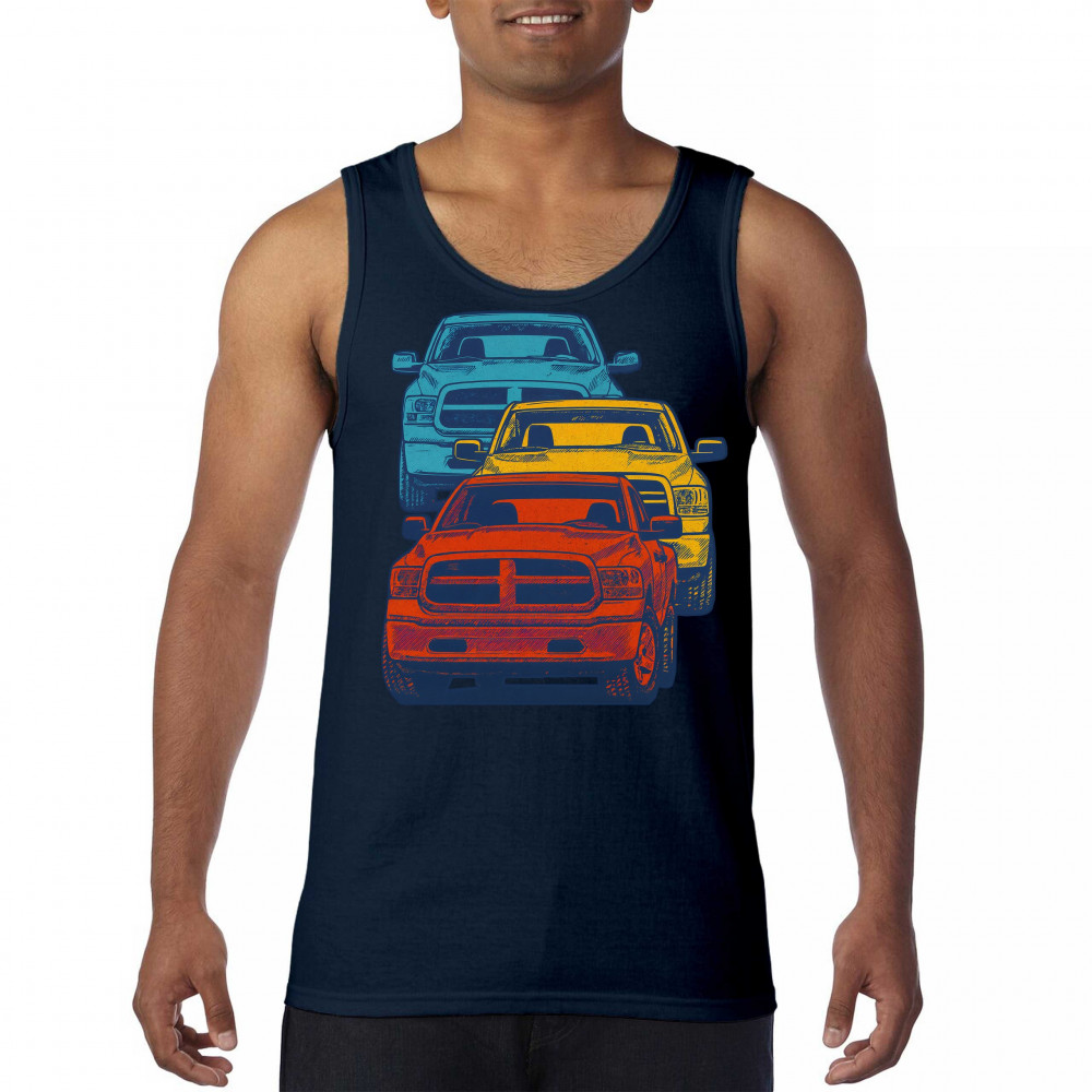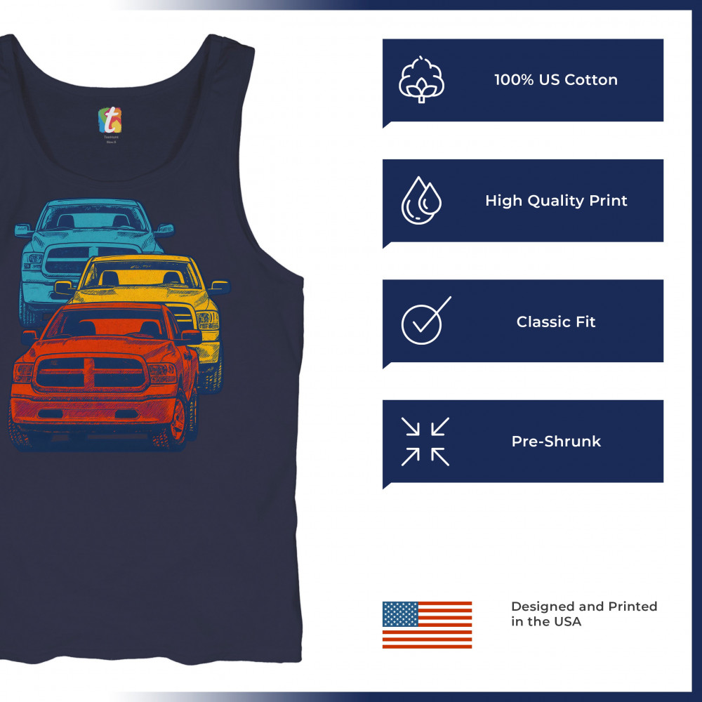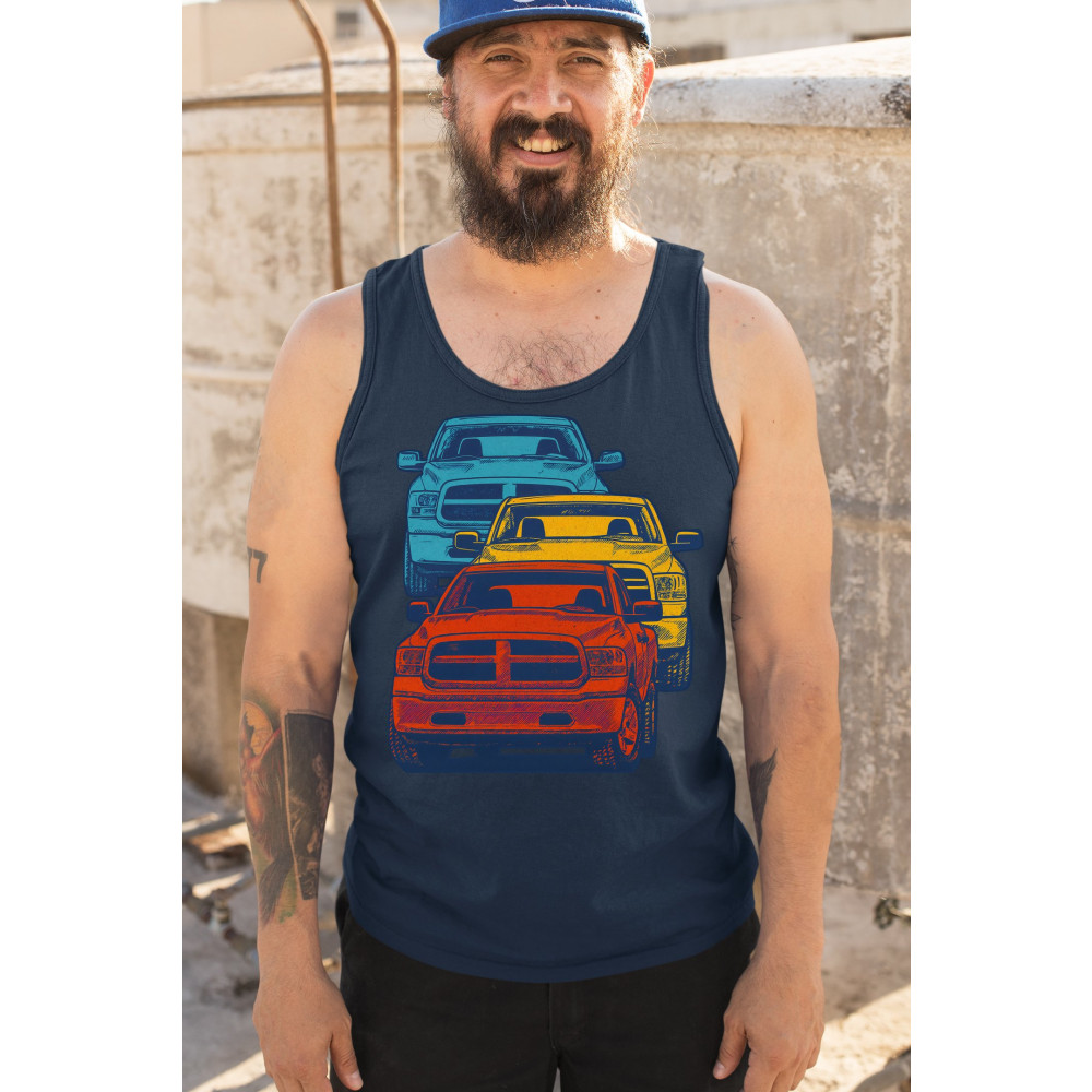 Boldly stacked and powerfully styled, this multicolor truck design showcases red, yellow, and blue pickups in a vertical formation. Made for fans of lifted truck culture, horsepower, and off-road pride, it celebrates diesel grit, road attitude, and the spirit of truck meets and gearhead unity.