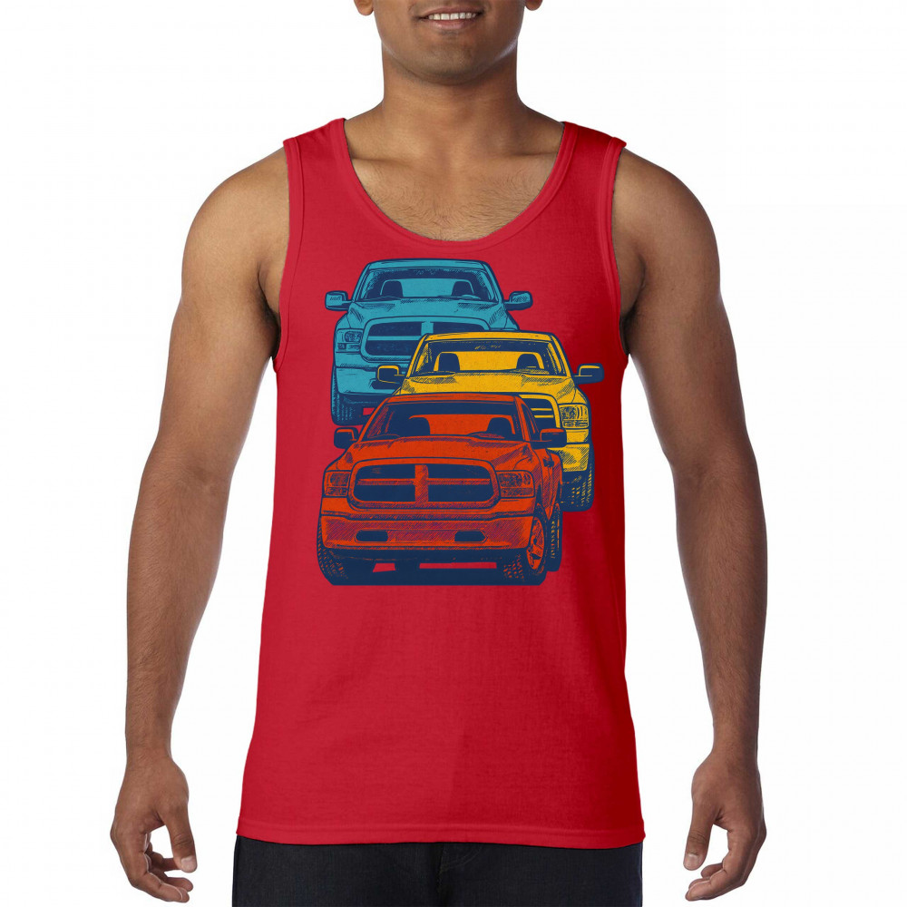 Boldly stacked and powerfully styled, this multicolor truck design showcases red, yellow, and blue pickups in a vertical formation. Made for fans of lifted truck culture, horsepower, and off-road pride, it celebrates diesel grit, road attitude, and the spirit of truck meets and gearhead unity.