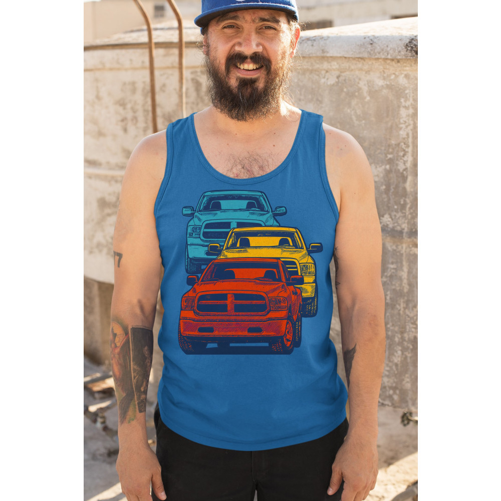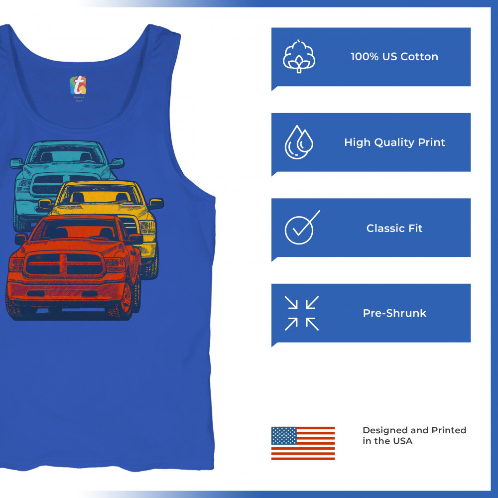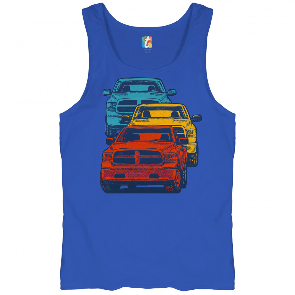 Boldly stacked and powerfully styled, this multicolor truck design showcases red, yellow, and blue pickups in a vertical formation. Made for fans of lifted truck culture, horsepower, and off-road pride, it celebrates diesel grit, road attitude, and the spirit of truck meets and gearhead unity.