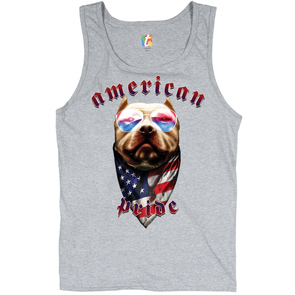 AMERICAN PRIDE PIT BULL tank top us flag bandana patriotic dog lover men's top gray