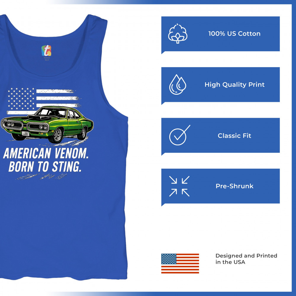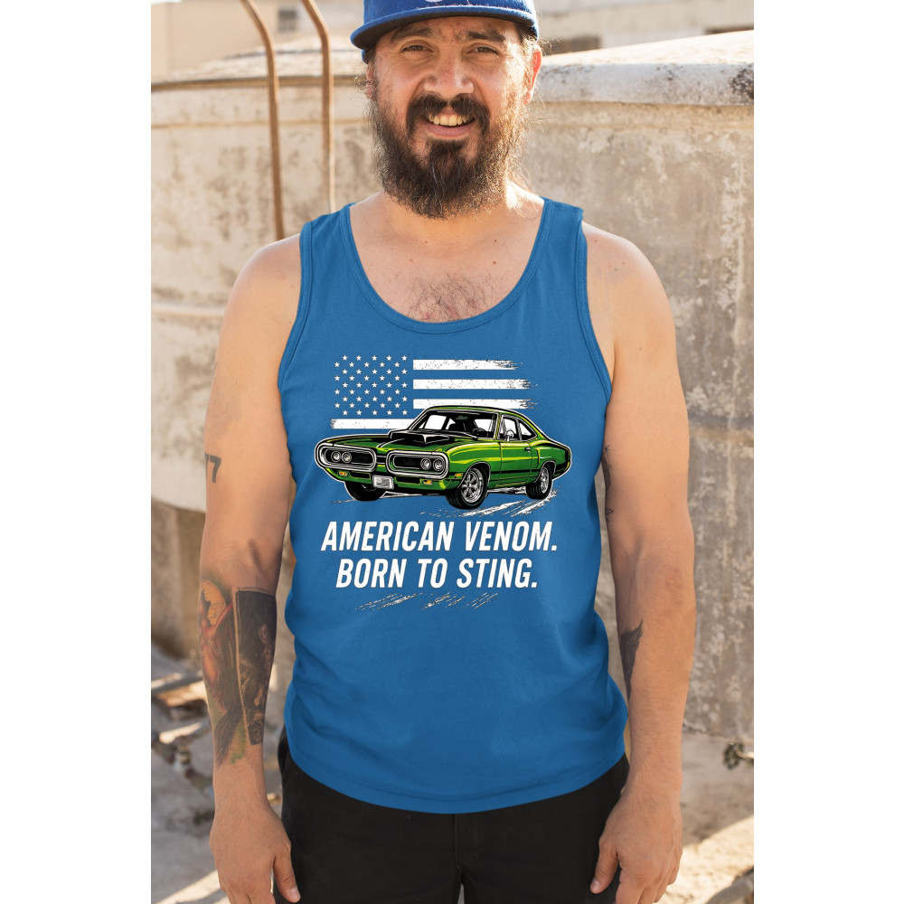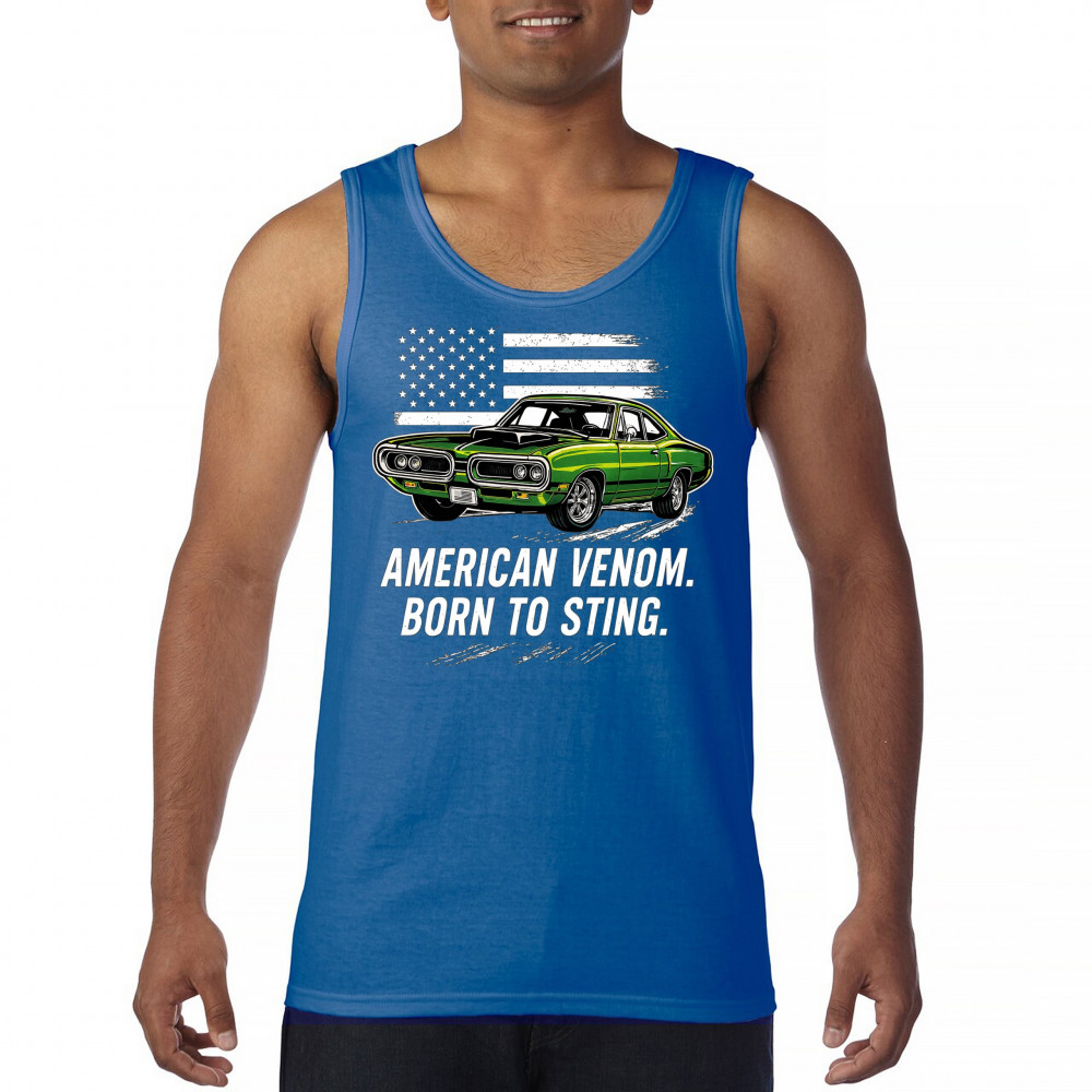 Inject venom into your street style with this bold green muscle car design. With “Born to Sting†power and a backdrop of American pride, this graphic is perfect for Scat fans, gearheads, and drivers who embrace speed, dominance, and the sound of true muscle. Rule car meets, rev battles, and highway runs with unmatched attitude.