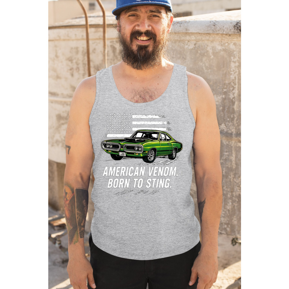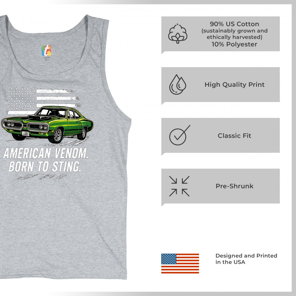 Inject venom into your street style with this bold green muscle car design. With “Born to Sting†power and a backdrop of American pride, this graphic is perfect for Scat fans, gearheads, and drivers who embrace speed, dominance, and the sound of true muscle. Rule car meets, rev battles, and highway runs with unmatched attitude.