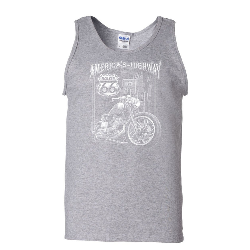 AMERICA'S HIGHWAY HISTORIC ROUTE 66 america's highway tank top route 66 mc motorcycle chopper bobber sleeveless gray