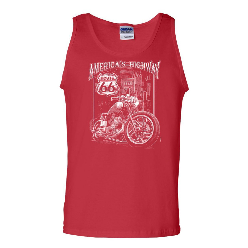 AMERICA'S HIGHWAY HISTORIC ROUTE 66 america's highway tank top route 66 mc motorcycle chopper bobber sleeveless red