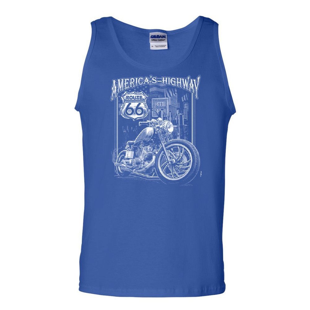 AMERICA'S HIGHWAY HISTORIC ROUTE 66 america's highway tank top route 66 mc motorcycle chopper bobber sleeveless blue