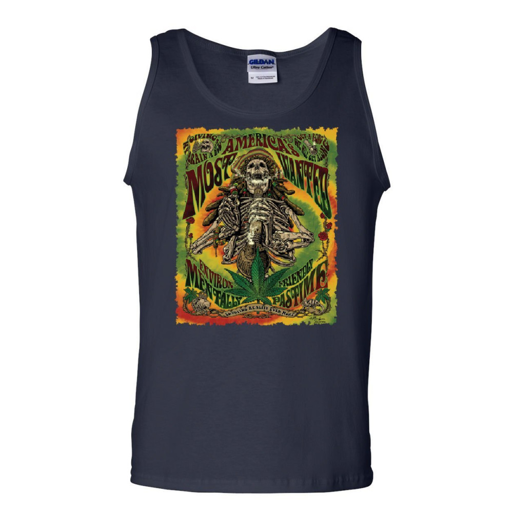 AMERICA'S MOST WANTED tank top 420 smoking weed marijuana rasta sleeveless navy blue