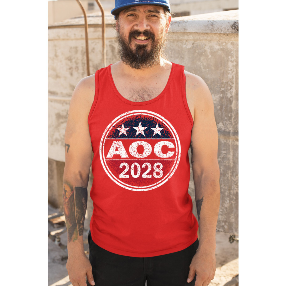 Show support for AOC 2028 with this patriotic distressed badge design. Great for progressives, rallies, events, and young political activists.