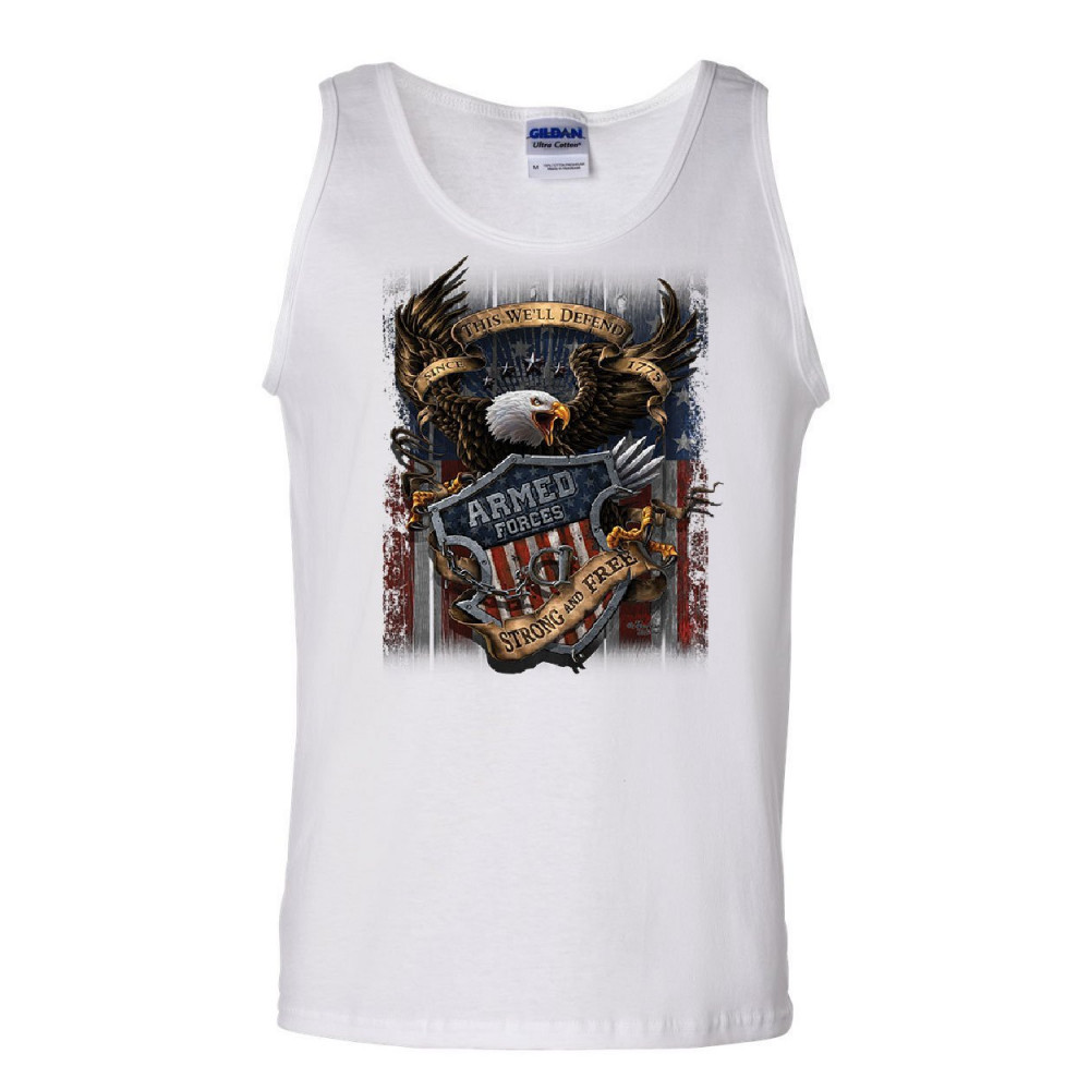 ARMED FORCES BALD EAGLE tank top army this we'll defend us flag sleeveless white