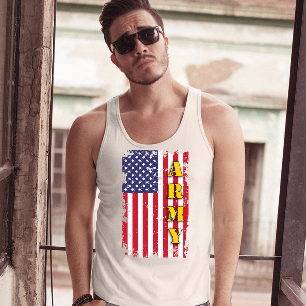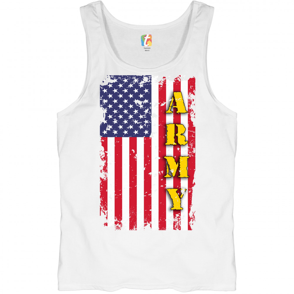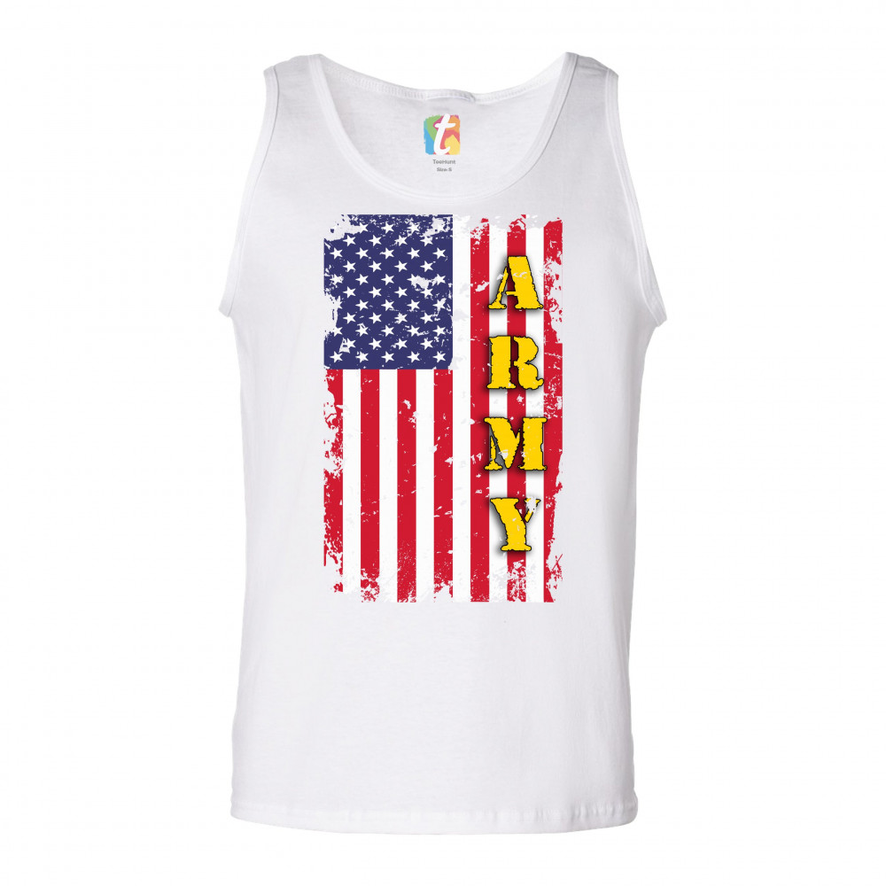 ARMY tank top american flag united states armed forces patriotic men's top white