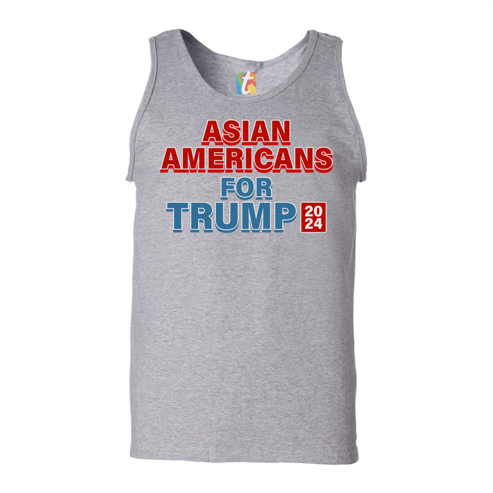 A political print saying "Asian Americans for Trump 2024". The words "Asian Americans" and the square with 2024 also have a pattern inside. A great choice to wear for a Trump rally or give as a gift to a Donald Trump supporter before 2024 presidential ele