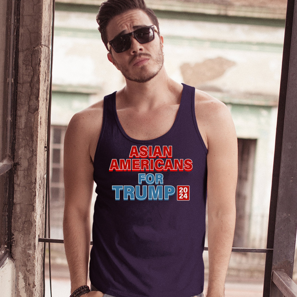 ASIAN AMERICANS FOR TRUMP 2024 tank top conservative vote red maga men's top navy blue