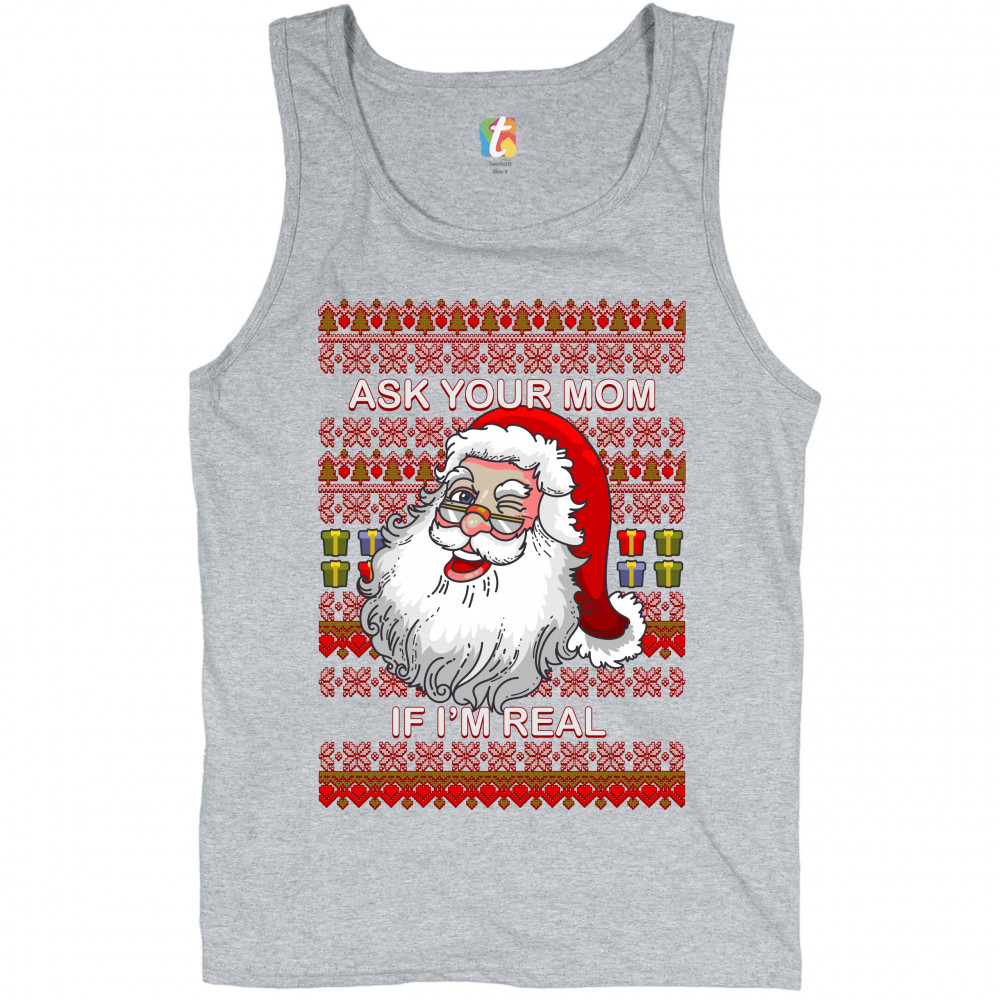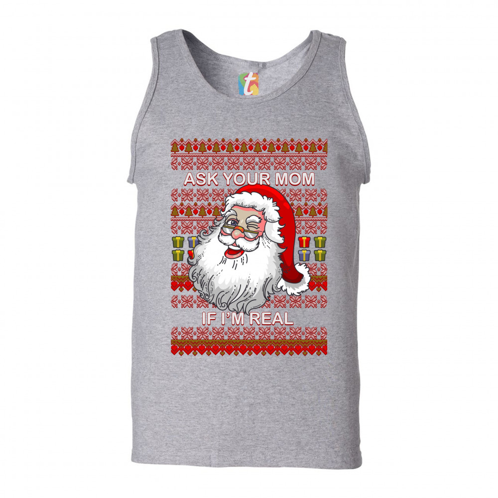ASK YOUR MOM IF I'M REAL tank top ugly sweater christmas santa claus men's top gray