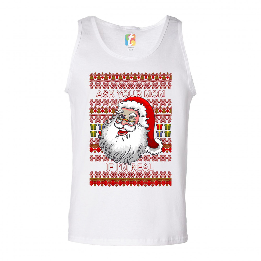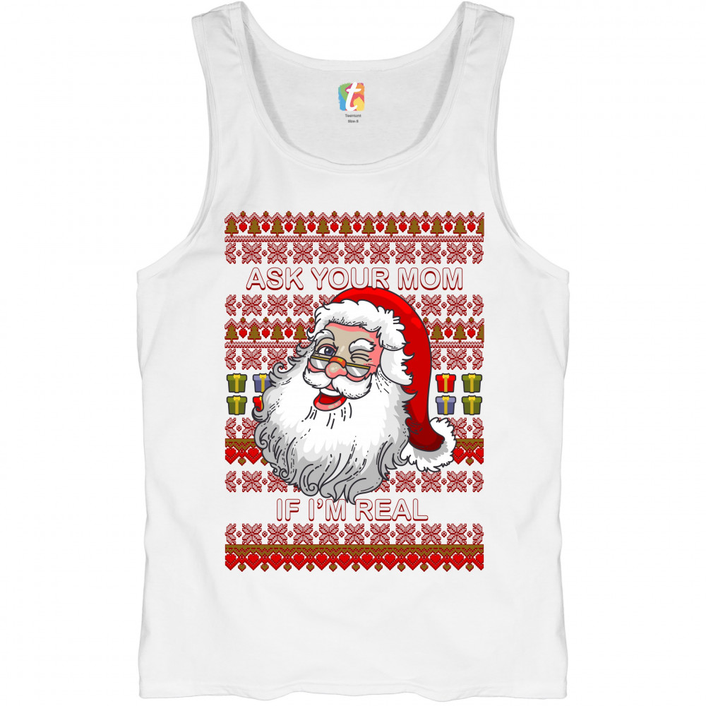 ASK YOUR MOM IF I'M REAL tank top ugly sweater christmas santa claus men's top white