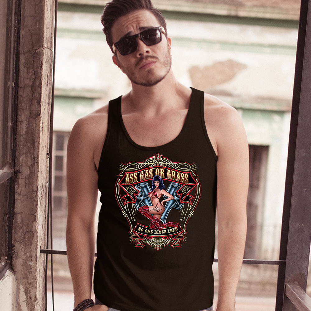 ASS GAS OR GRASS tank top biker no one rides free live to ride men's top black