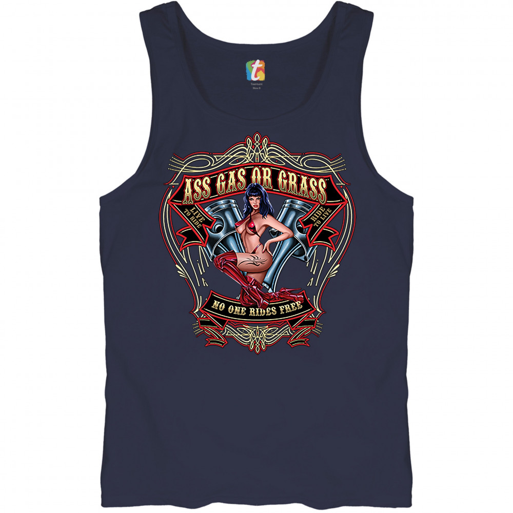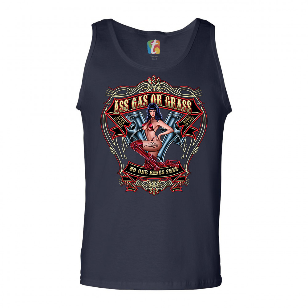 ASS GAS OR GRASS tank top biker no one rides free live to ride men's top navy blue