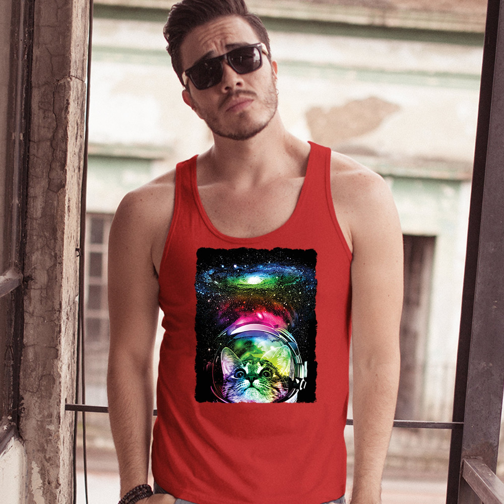 A beautiful print featuring a cat in space wearing a helmet. Above the cat's head there is a galaxy. A great choice for any cat person and space enthusiast.