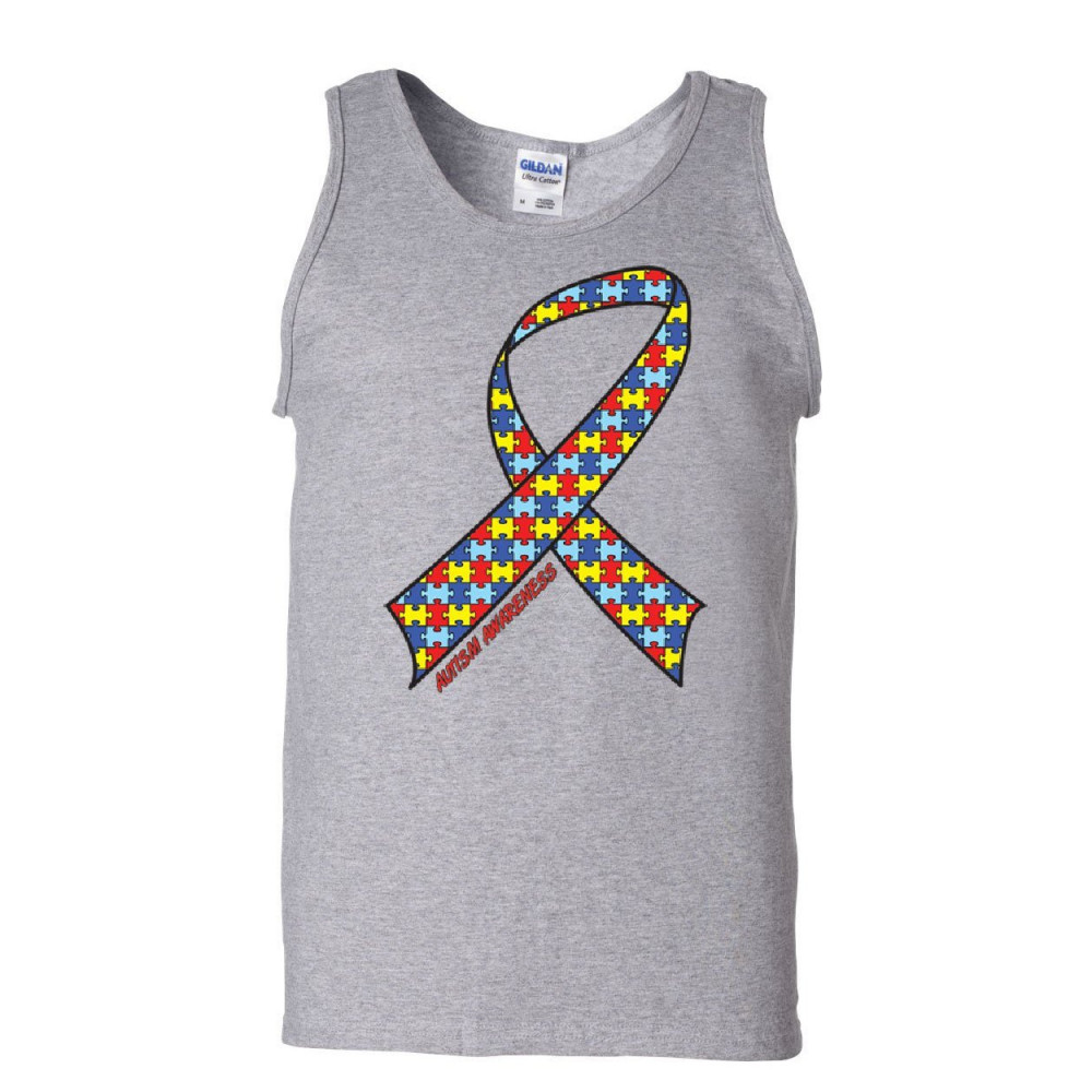 AUTISM AWARENESS RIBBON tank top support care love asd asperger sleeveless gray