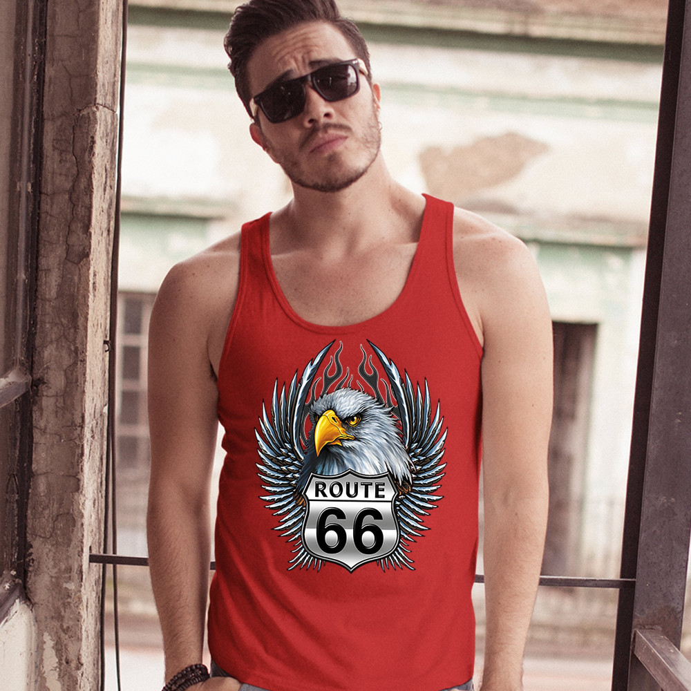 BALD EAGLE ROUTE 66 ROAD SIGN tank top live to ride born to be wild men's top red