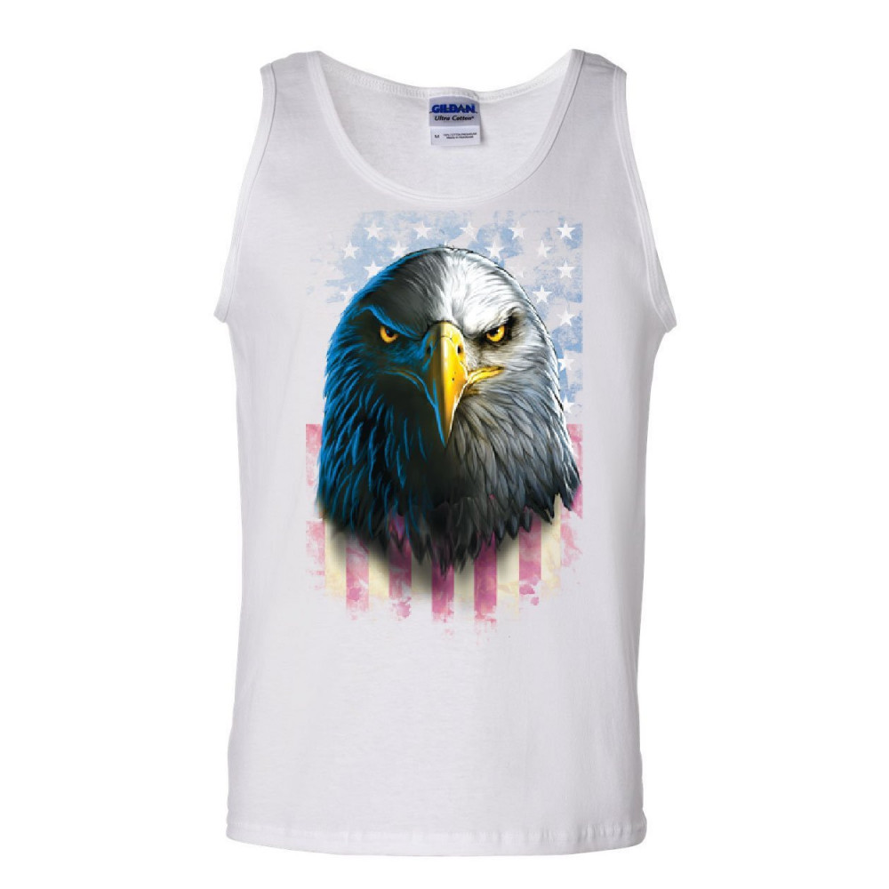 BALD EAGLE STARE tank top 4th of july usa stars and stripes flag sleeveless white