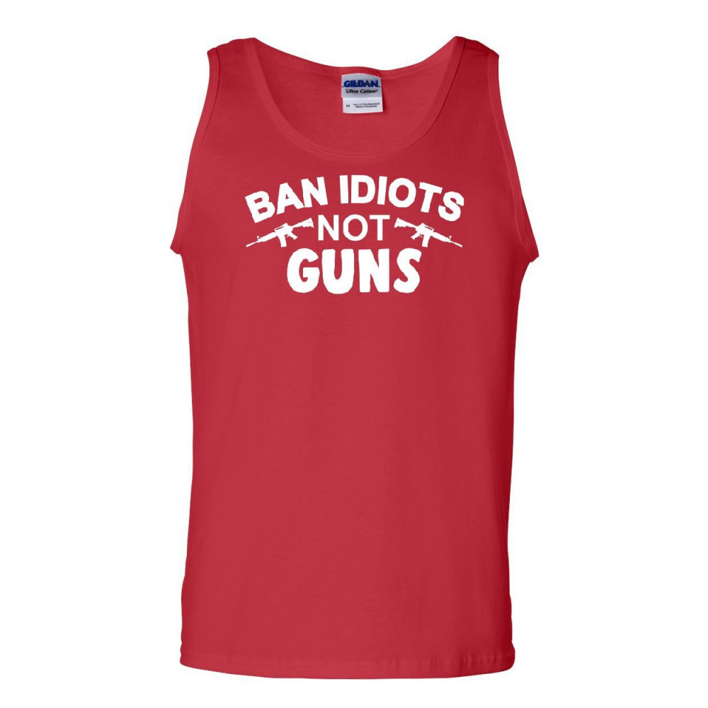 BAN IDIOTS NOT GUNS tank top patriot 2nd amendment pro guns arms sleeveless red