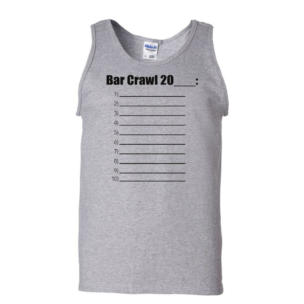 BAR CRAWL 20__ CHECK LIST tank top drinking college beer booze sleeveless gray