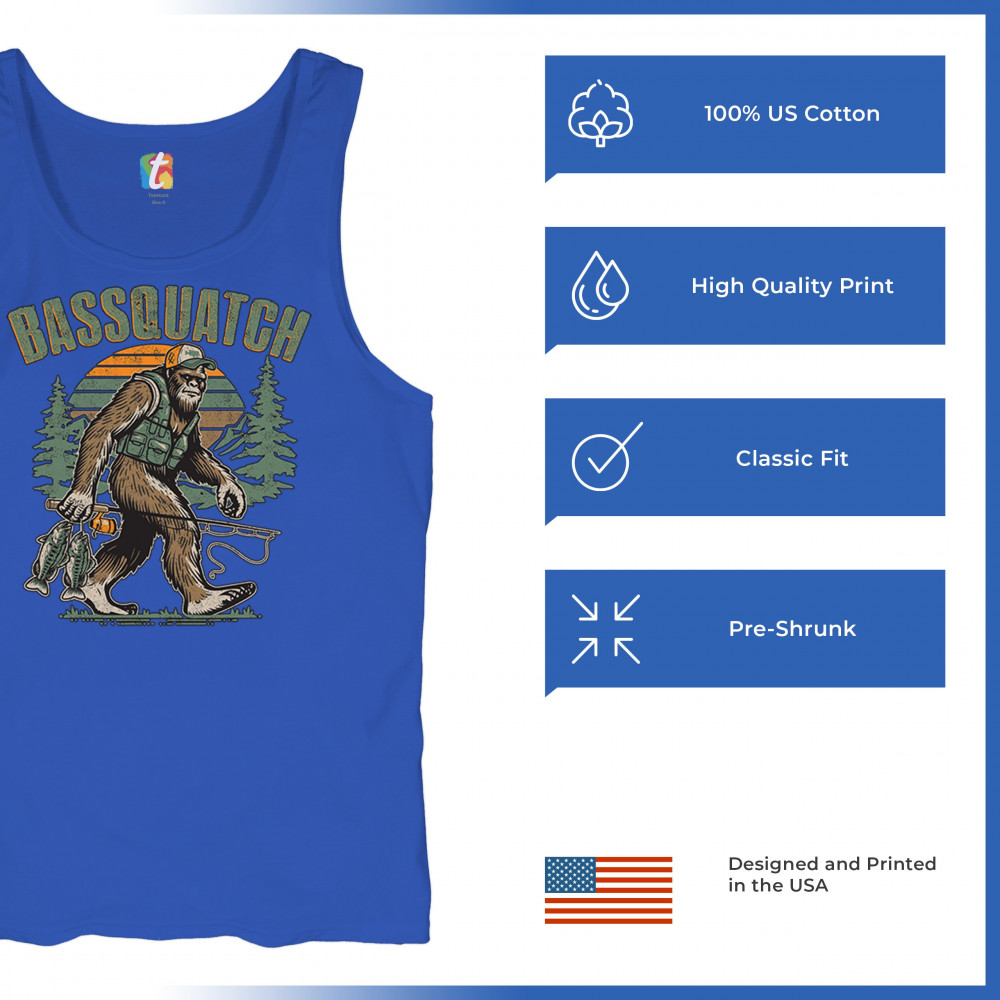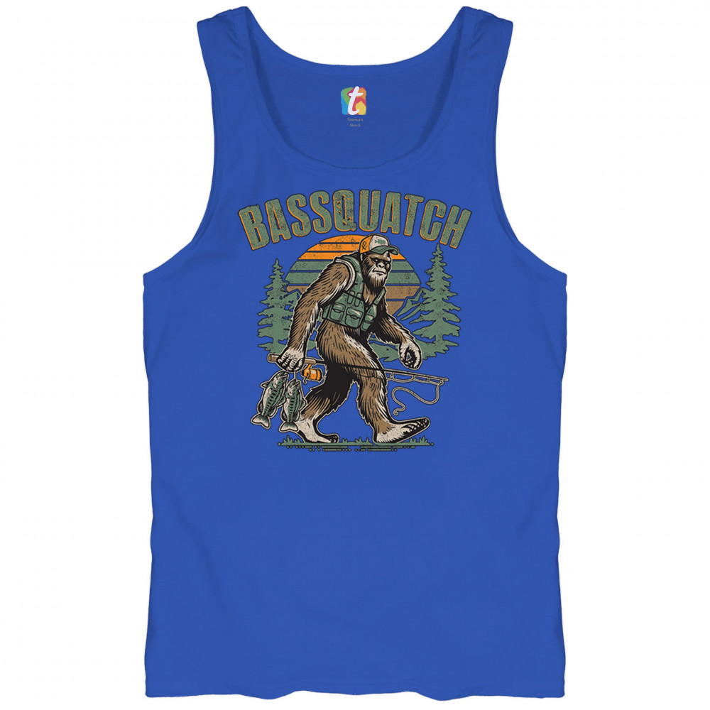 Funny Bassquatch design blends Bigfoot, fishing humor, and retro forest style. Great for anglers, cryptid lovers, and outdoorsy pun fans.