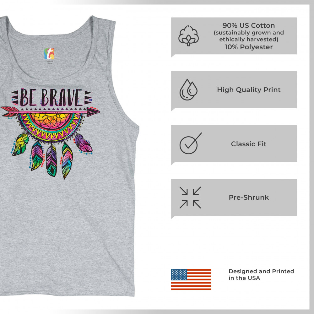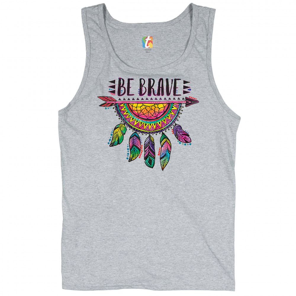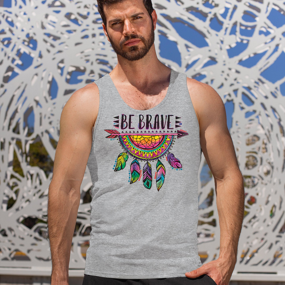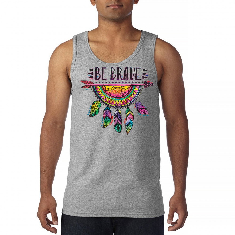 BE BRAVE DREAM CATCHER tank top dean russo motivation feather men's top gray