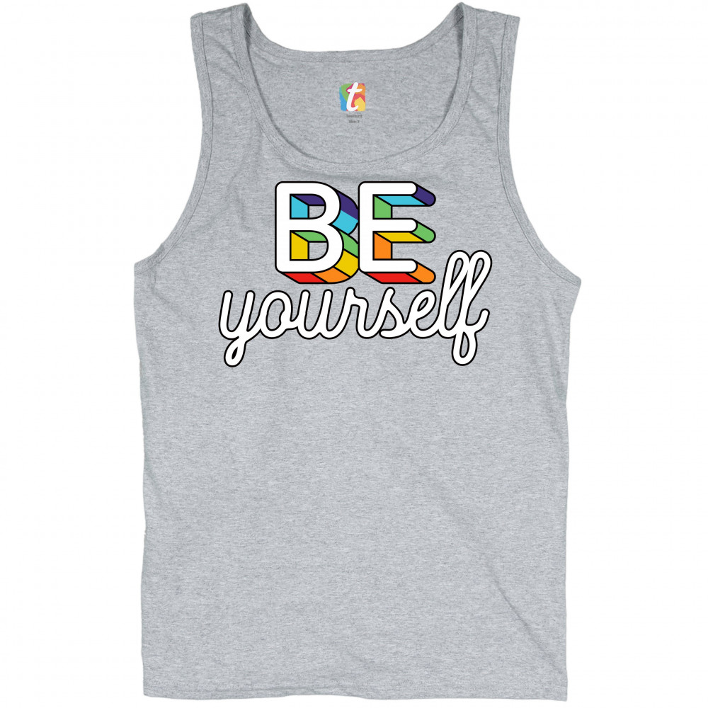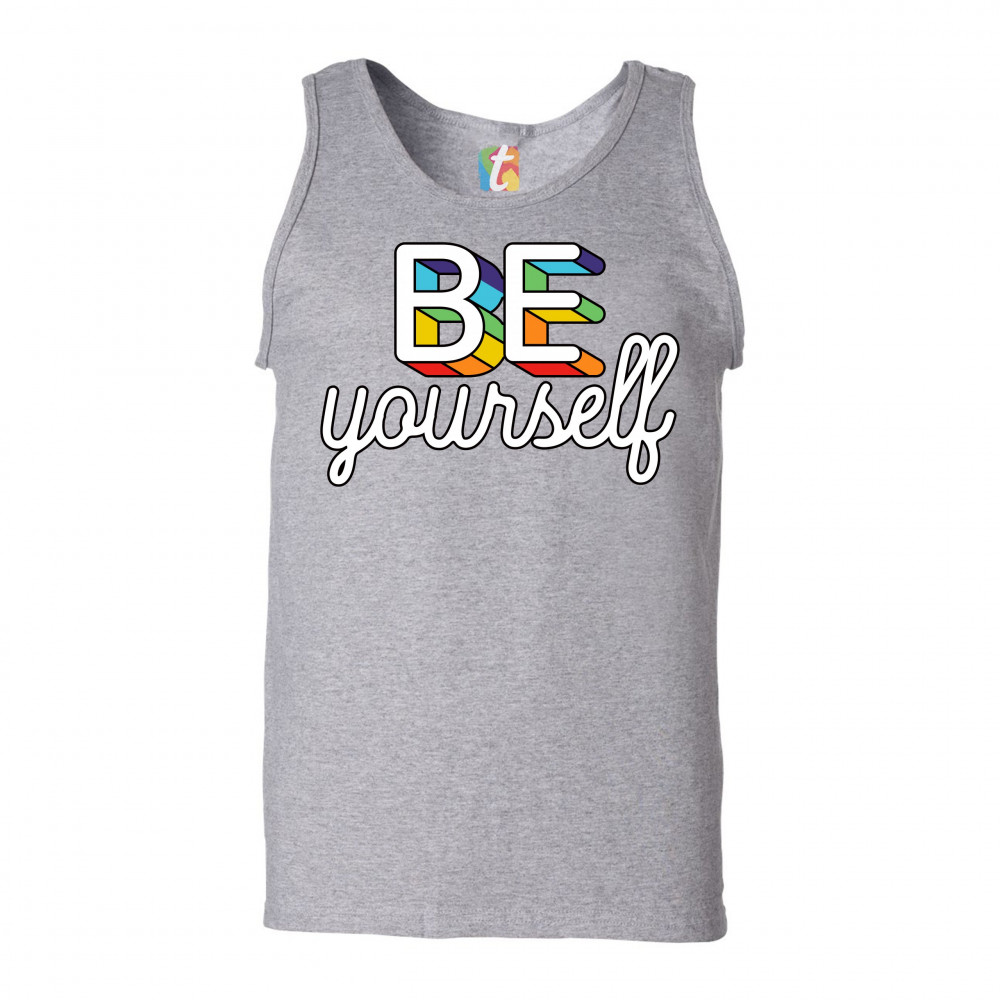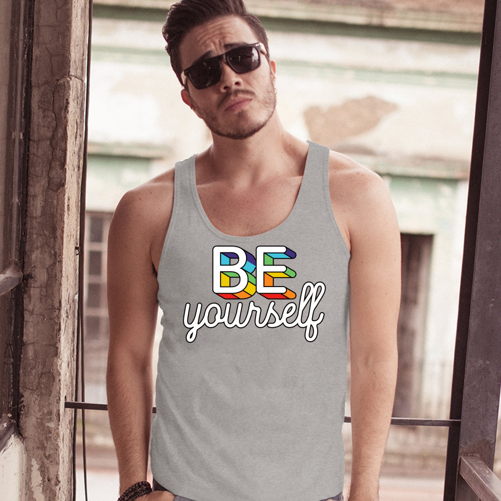 BE YOURSELF tank top lgbt support gay pride rainbow good vibes ally men's top gray