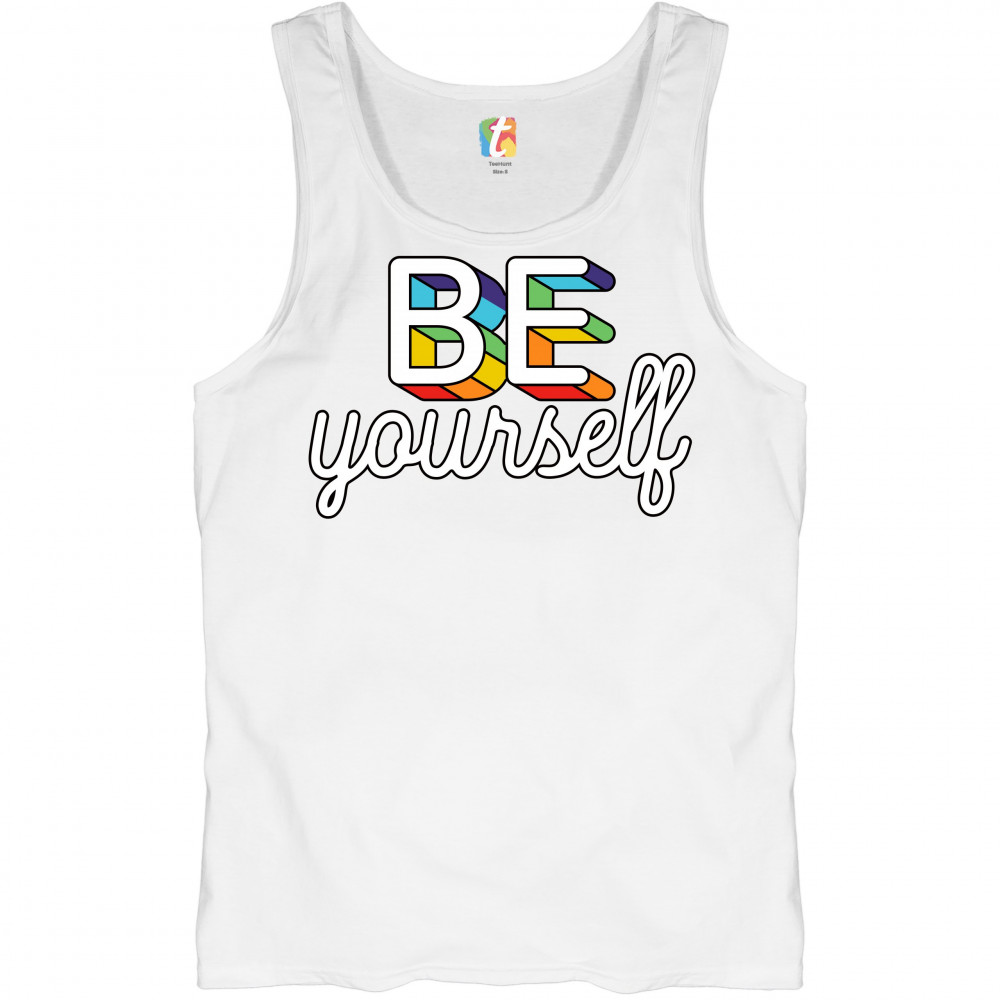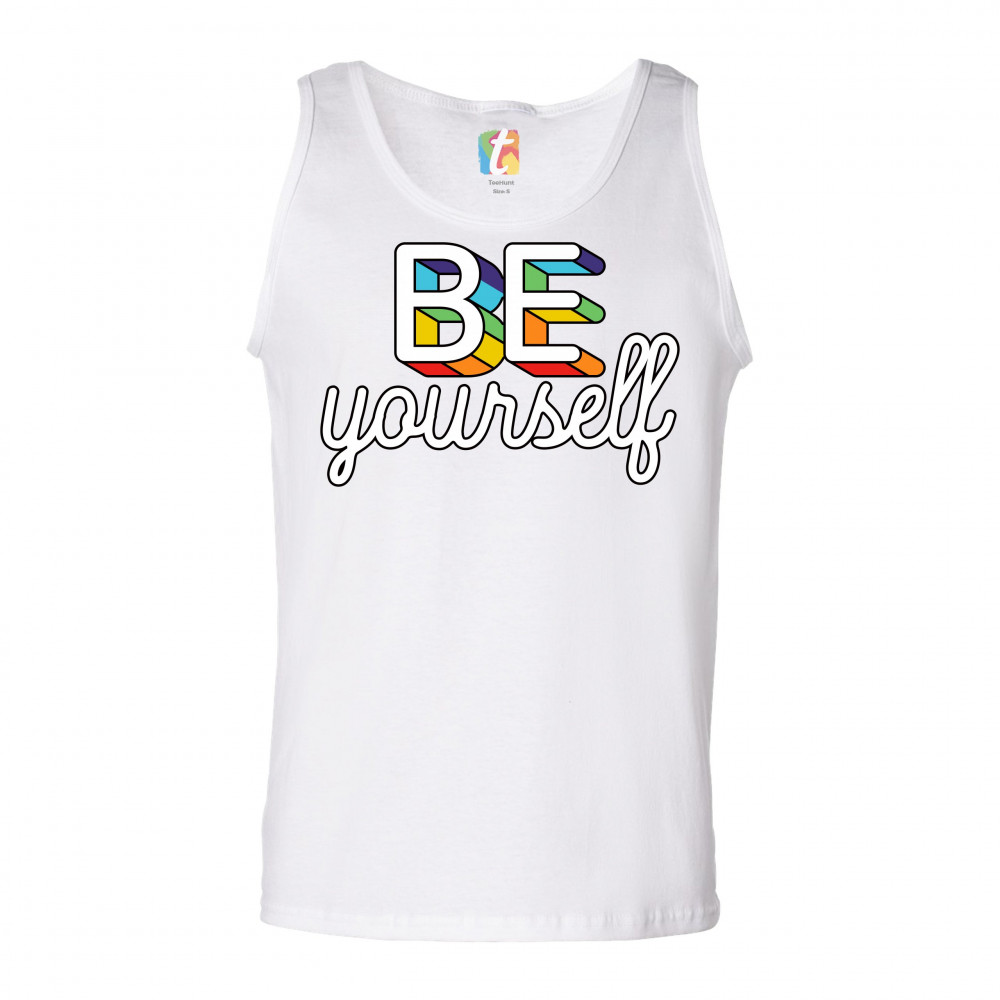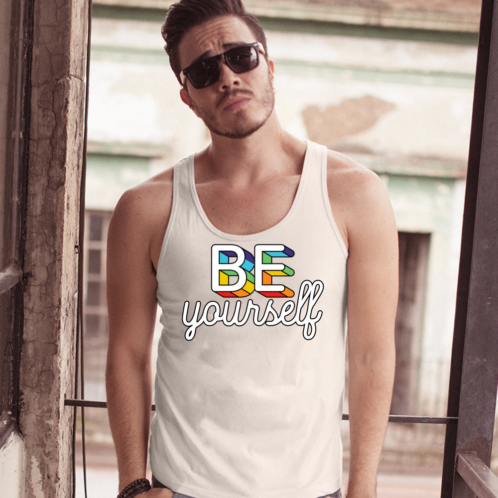 BE YOURSELF tank top lgbt support gay pride rainbow good vibes ally men's top white