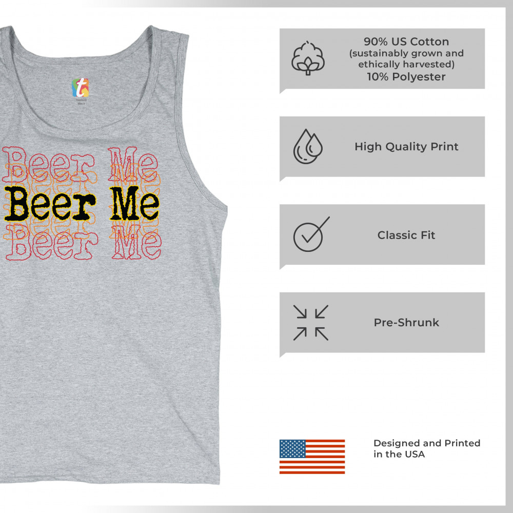 “Beer Me†brings sarcastic drinking humor to life with bold distressed lettering and a grunge-style retro background. Perfect for bar nights, tailgates, beer festivals, or casual party wear. A top pick for beer fans with a loud sense of humor and love for brews.