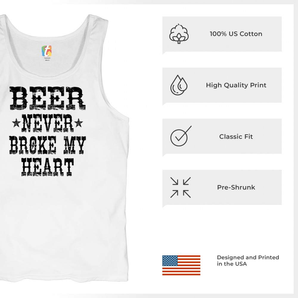 Beer Never Broke My Heart brings funny, great value style for beer lovers—perfect for bar crawls, backyard BBQs, and dad gifts.