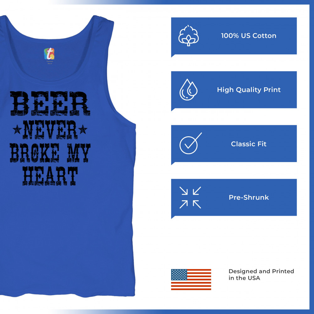 Beer Never Broke My Heart brings funny, great value style for beer lovers—perfect for bar crawls, backyard BBQs, and dad gifts.
